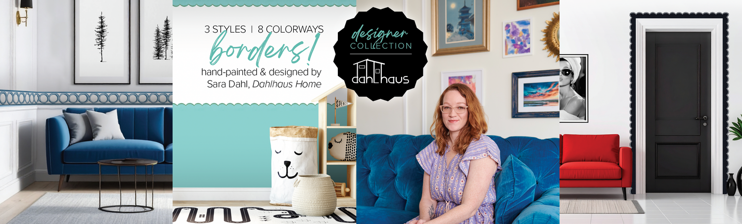 We're thrilled to share our collaboration with textile and interior designer Sara Dahl of Dahlhaus Design! Her new borders can beautifully enhance a room, while not breaking the budget. Available in all of our materials. Printed with eco-friendly inks right here in Pittsburgh, PA.