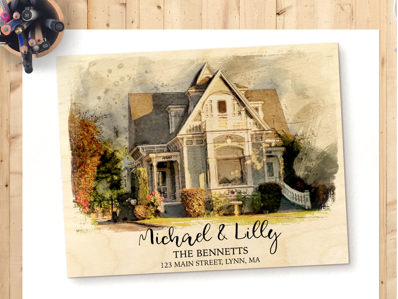 Custom Closing Gift, Watercolor House Painting on Wood - MWW0001