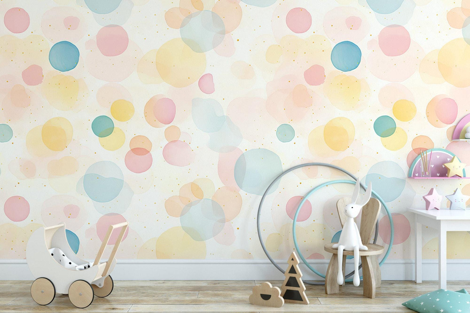 Abstract Circles in Pastels PEEL AND STICK WALLPAPER Removable Wallpaper, Wall Art