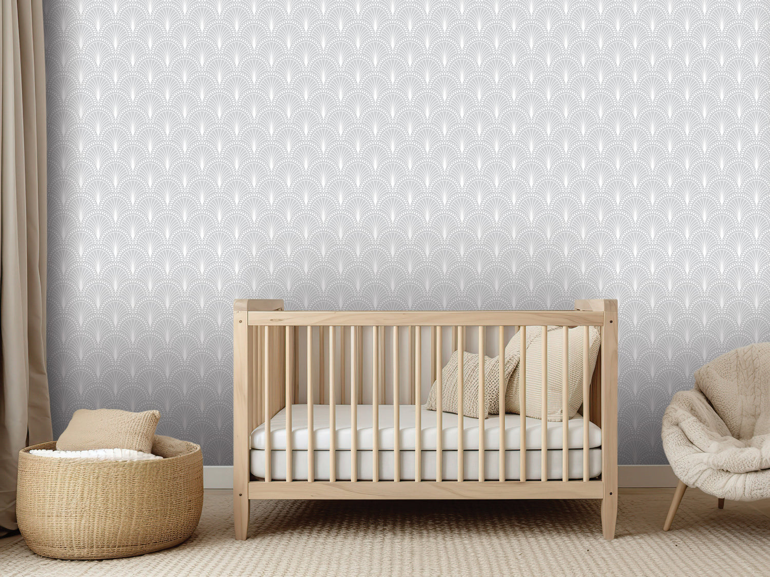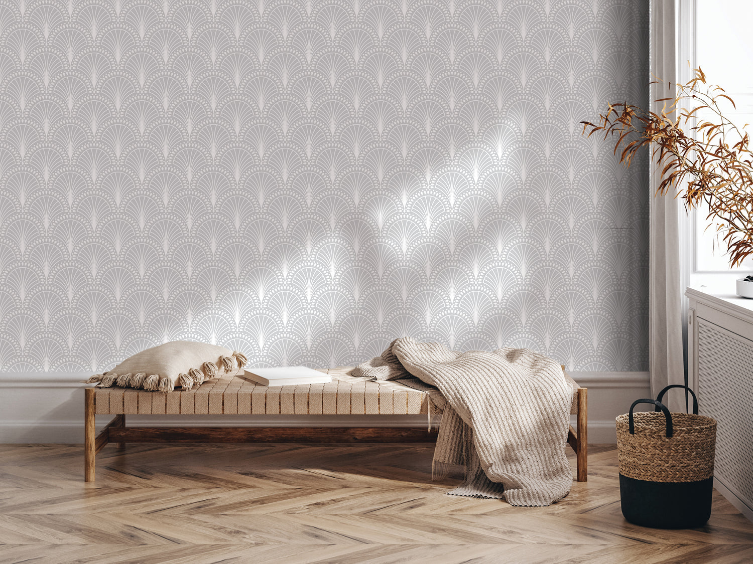 Art Deco Gray & White - Peel and Stick Wallpaper - Natural Wall Covering - Wall Mural - Removable Wallpaper - Wall Decor - Accent - MW2318