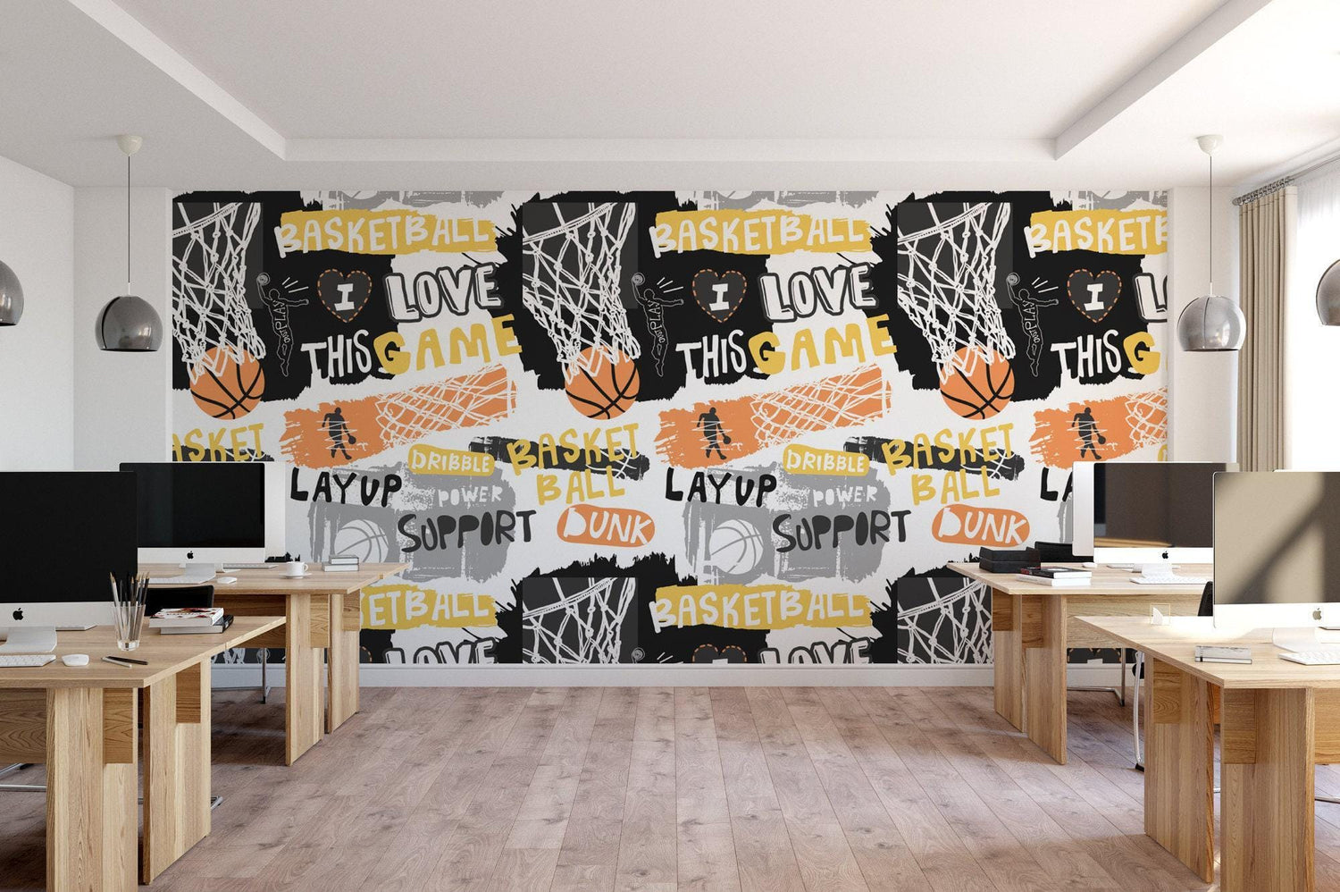 Basketball Slogans, Sports Removable Wallpaper, Peel and Stick Wallpaper, Wall Art, Wall Decor
