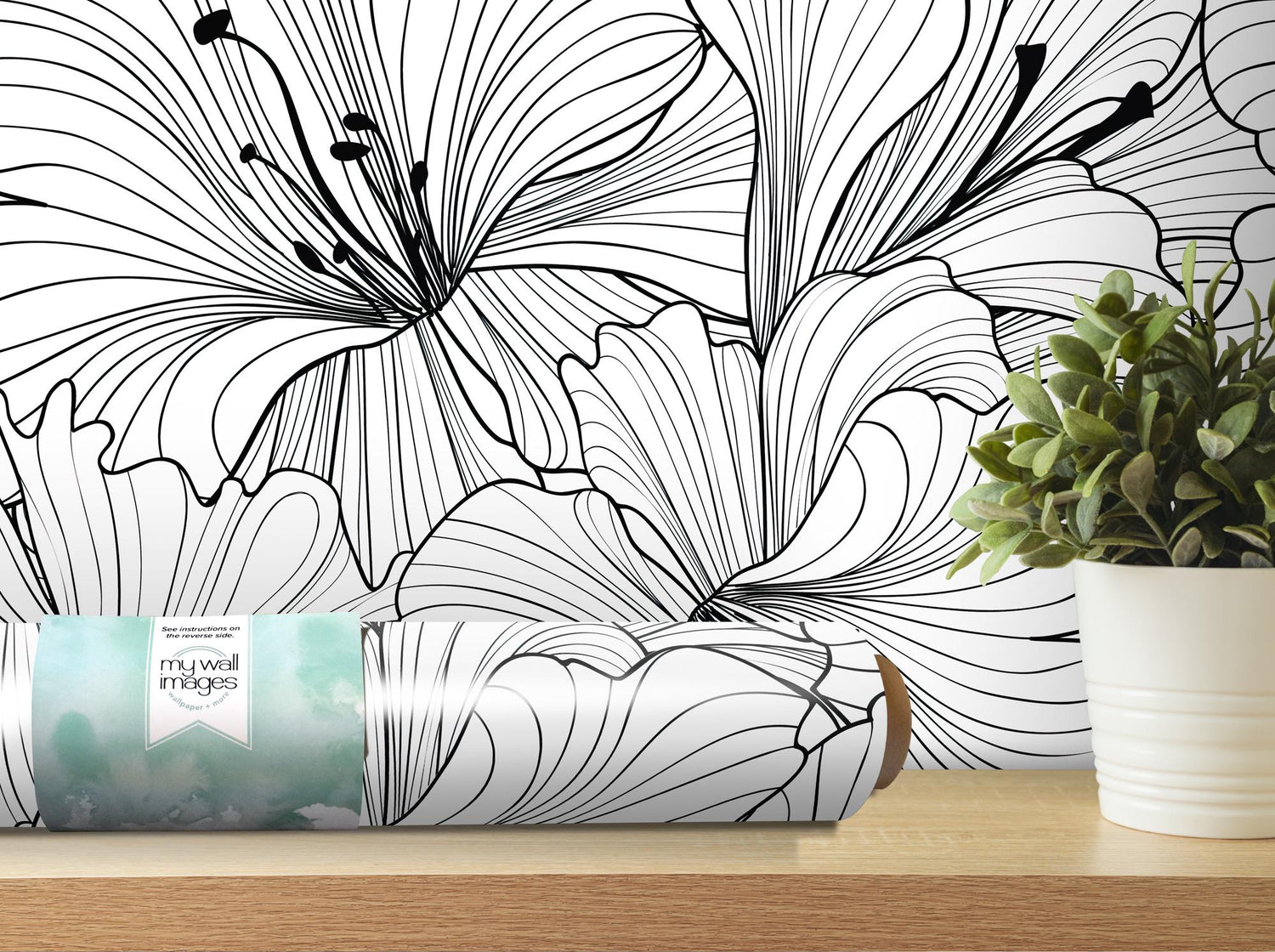 Black and White Large Floral Removable Wallpaper, Wall Art, Peel and Stick Wallpaper, Room Decor, Accent Wall