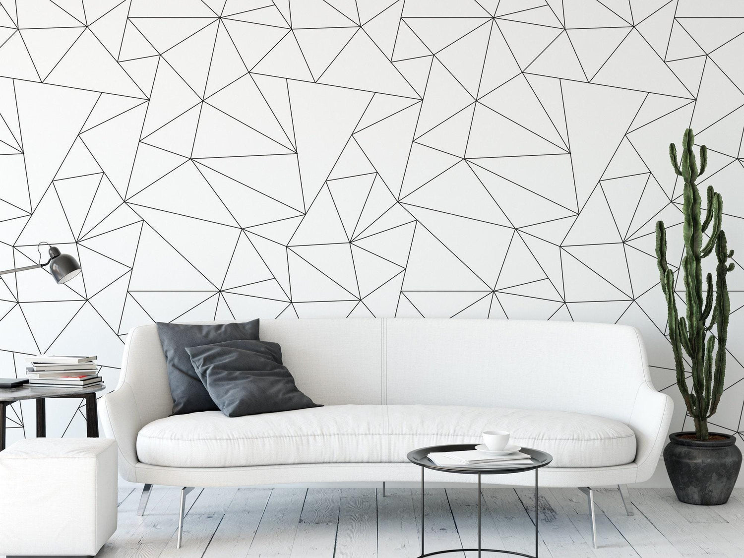 Black and White Triangle Abstract Removable Wallpaper, Wall Art, Peel and Stick Wallpaper, Room Decor, Accent Wall, Modern