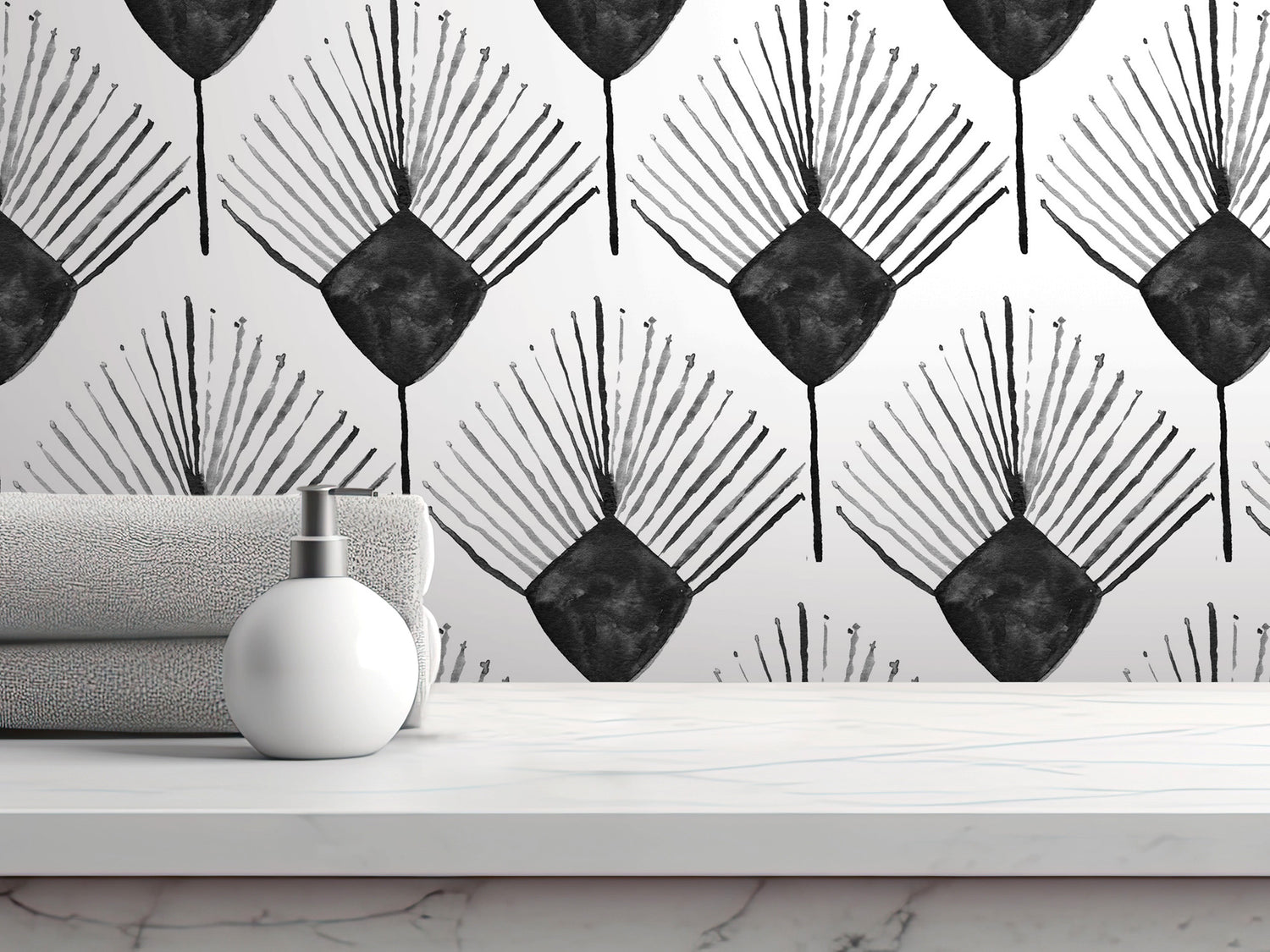 Black Boho Spray Peel and Stick Wallpaper - Removable Mural (MW2046)