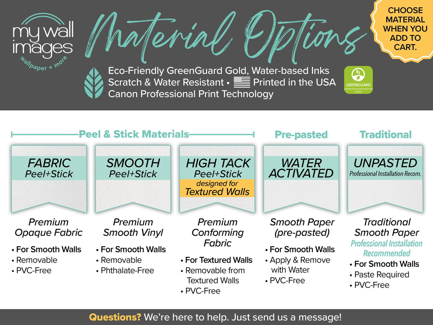 Our Removable Peel and Stick Wallpaper and Removable Water-activated, Pre-pasted Wallpapers are the way to transform your space! We also have traditional, unpasted wallpaper for commercial and residential spaces. We are proud to announce that we have been featured on HGTV.com several times as well as in an ETSY TV commercial!