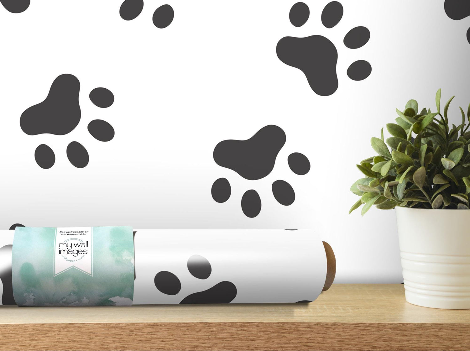 Black Paw Prints, Puppy, Dog Removable Wallpaper, Wall Art, Peel and Stick Wallpaper, Wall Decor, Veterinarian, Accent Wall