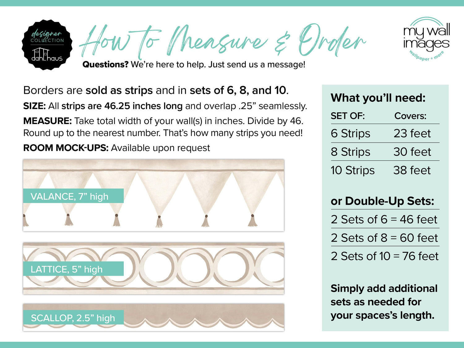 SCALE: Order a sample to see a piece of the border at FULL HEIGHT.