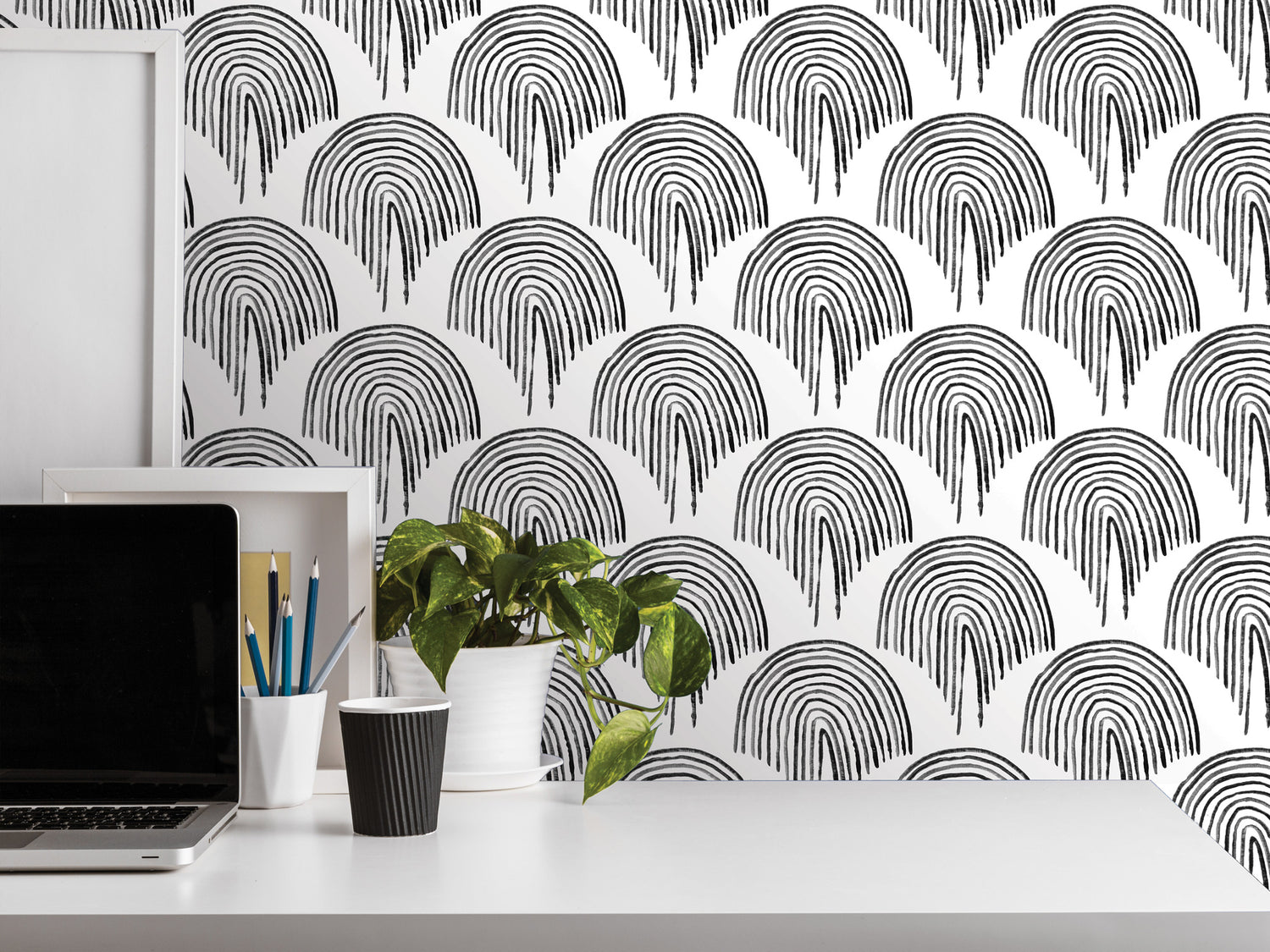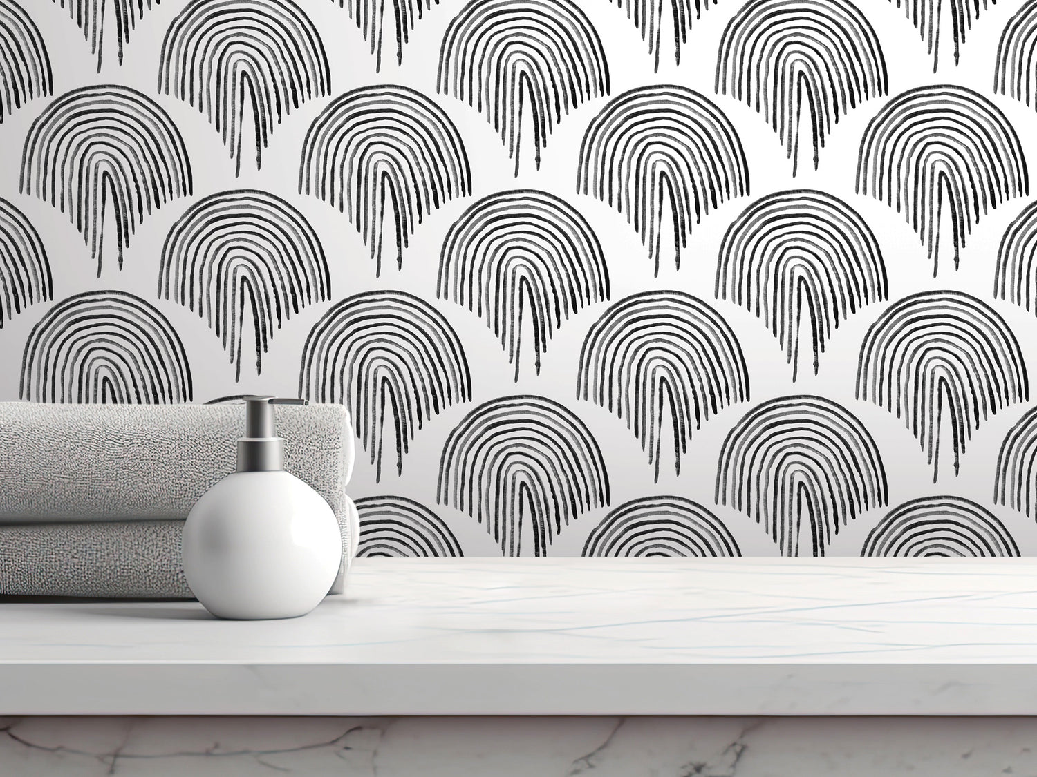 Black White Boho Floating Rainbow Wallpaper - Peel and Stick Mural (MW2104)