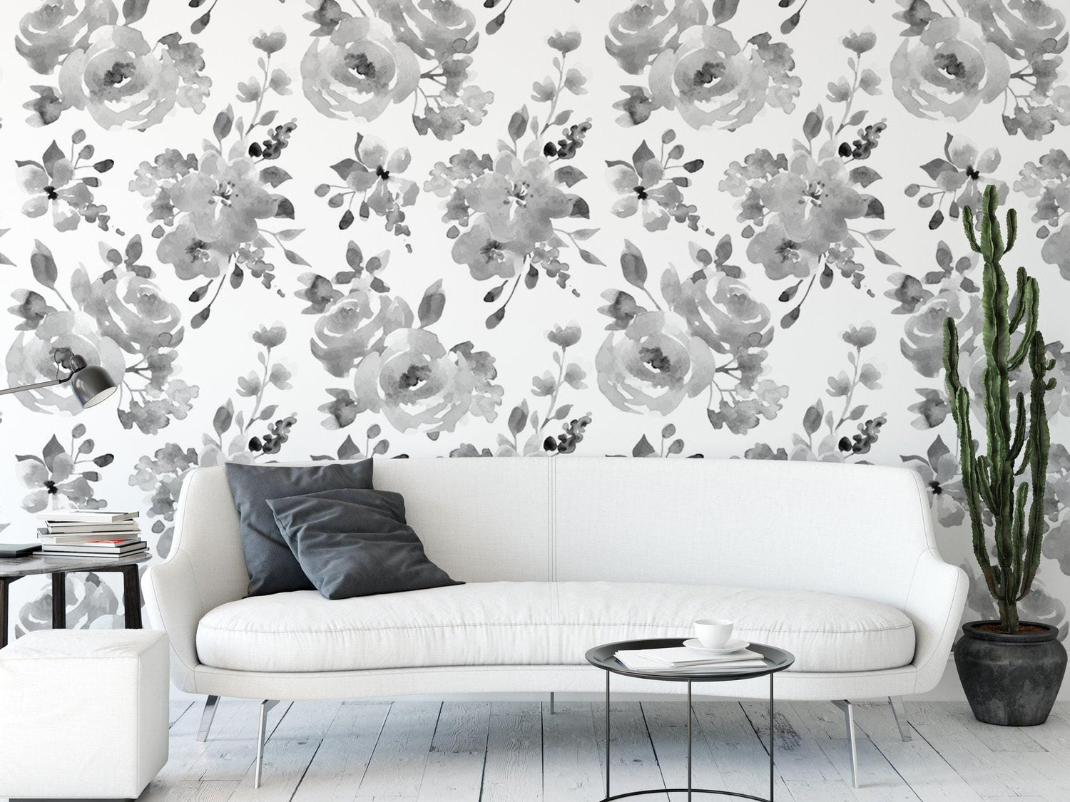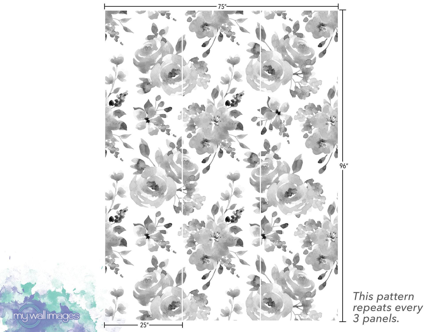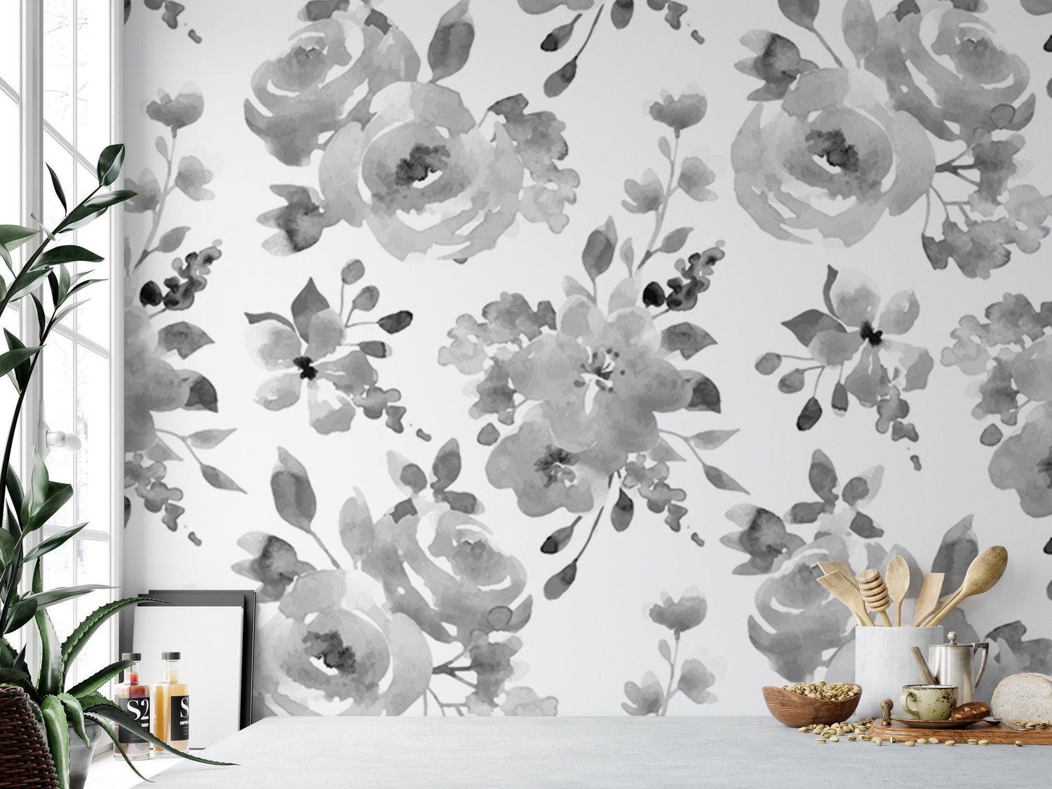 Black & White Shaded Floral Removable Wallpaper, Wall Art, Peel and Stick Wallpaper, Bedroom, Floral Wallpaper, Accent Wall