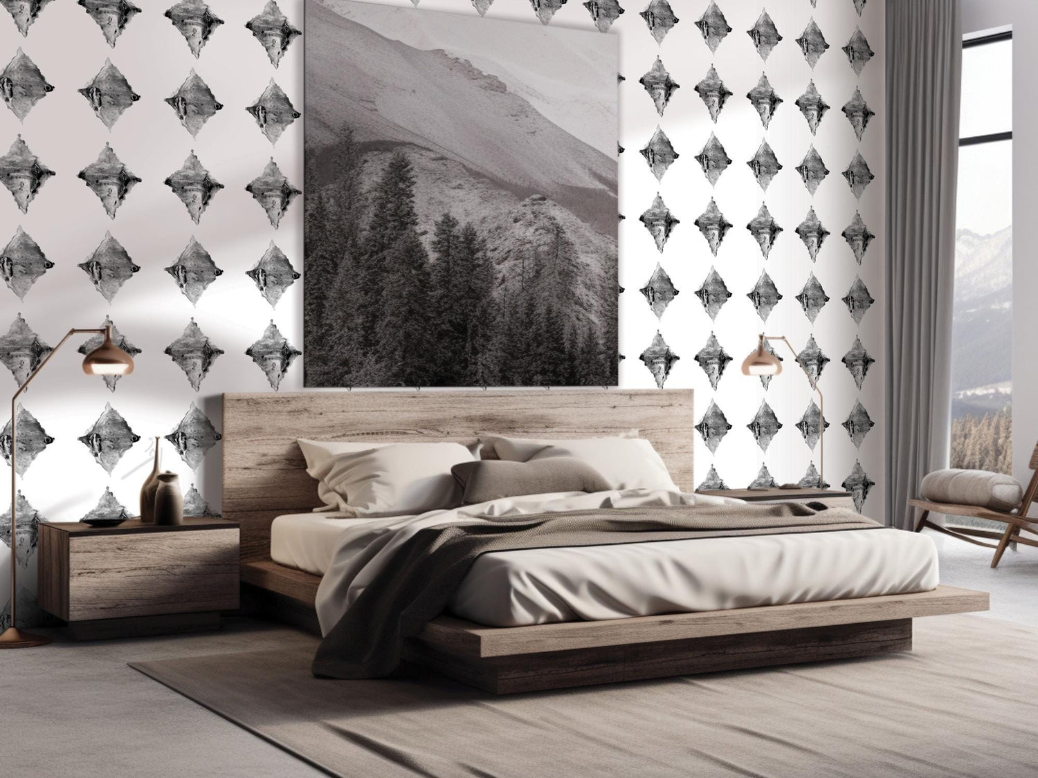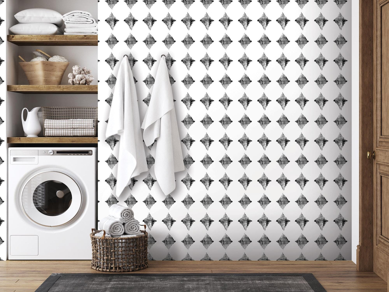 Black White Watercolor Diamonds 2 Removable Wallpaper, Wall Art, Peel and Stick Wallpaper, Wall Decor, Accent Wall, Original Design, MW2147