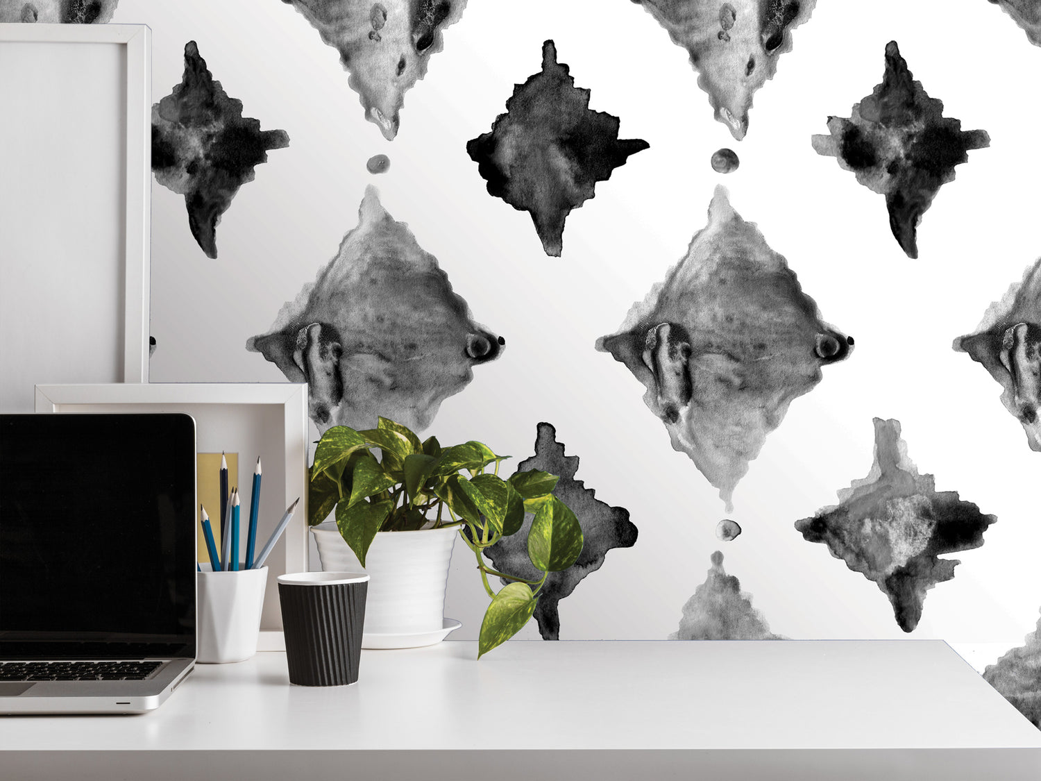 Peel and Stick Wallpaper | Black and White Ikat 2 | Watercolor, Bold, Removable Mural (MW2148)
