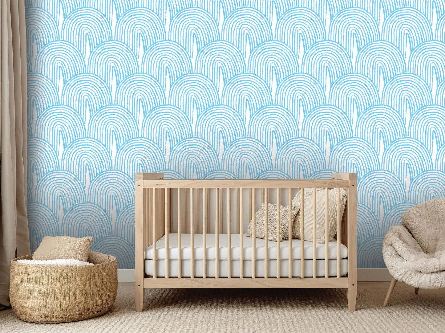 Blue Boho Watercolor Rainbow Removable Wallpaper, Peel and Stick Wallpaper, Wall Art, Wall Decor