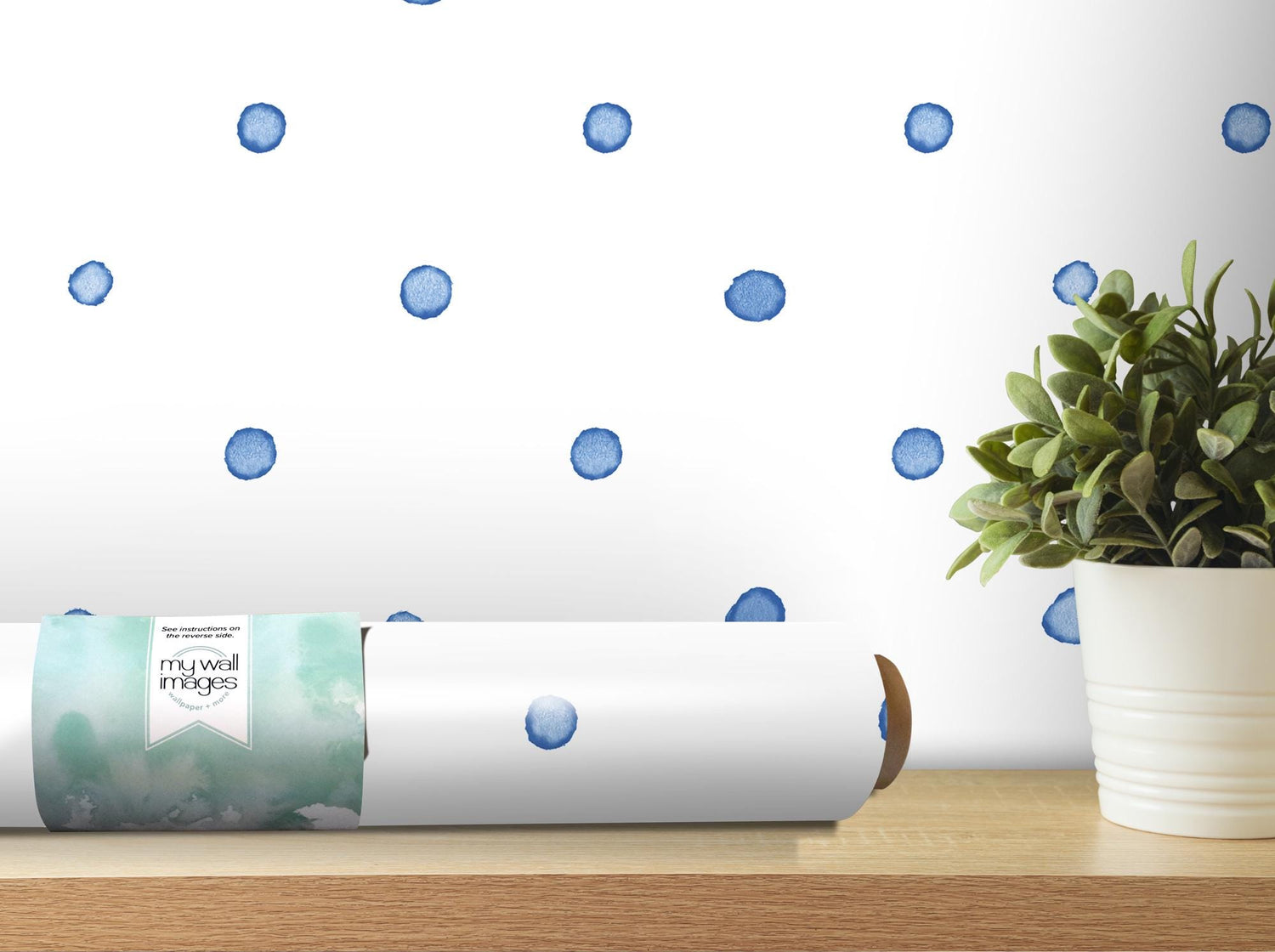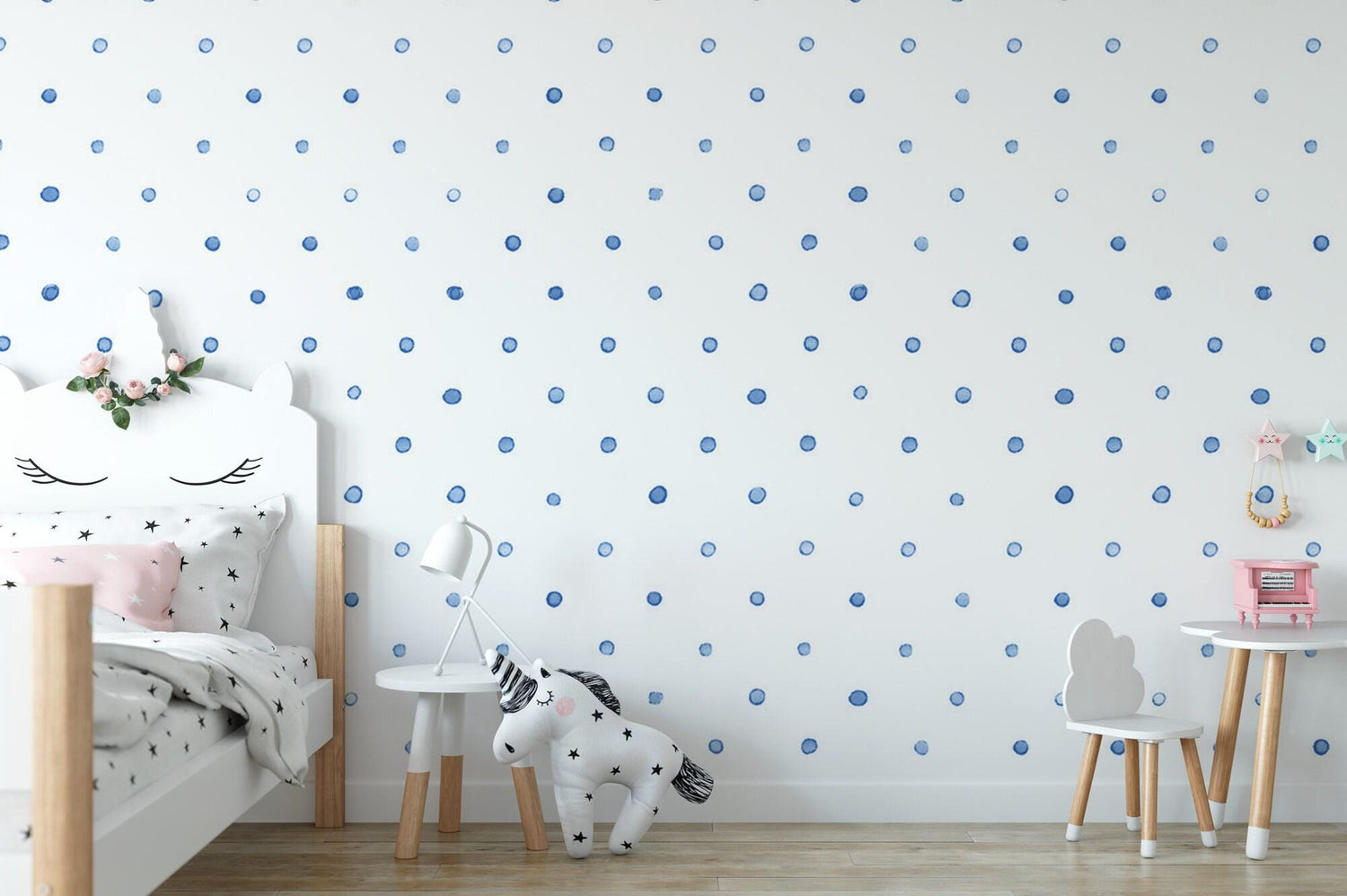 Blue Watercolor Dots Removable Wallpaper, Wall Art, Peel and Stick Wallpaper, Room Decor, Accent Wall, Nursery, Minimalist Wallpaper