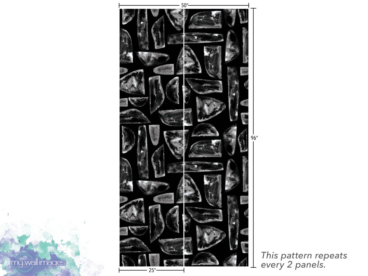 Boho Cave Gray Watercolor Mosaic Stones on Black Removable Wallpaper, Peel and Stick Wallpaper, Wall Art, Wall Decor