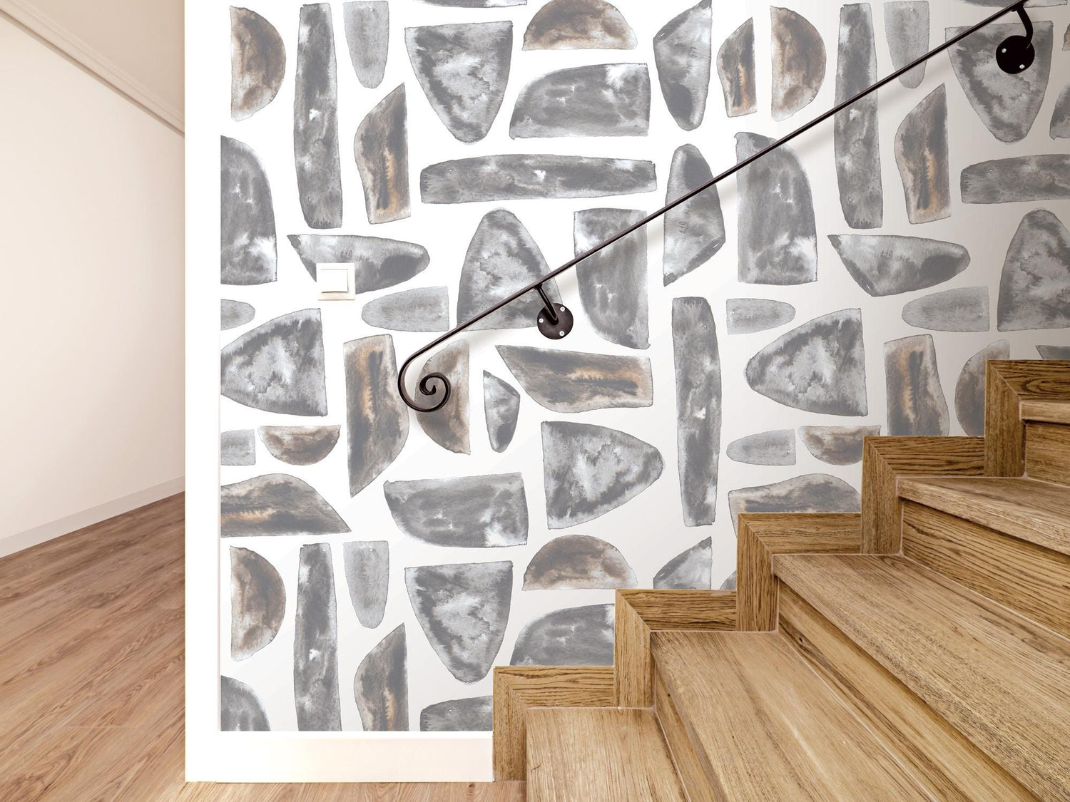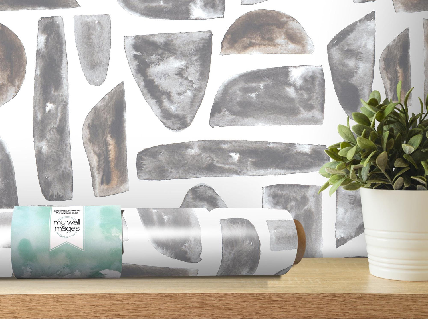 Boho Warm Gray Watercolor Mosaic Stones on White Removable Wallpaper, Peel and Stick Wallpaper, Wall Art, Wall Decor