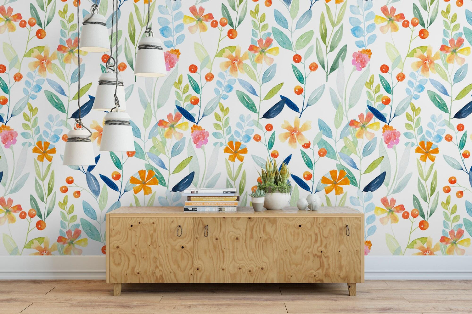 Bright Botanical Removable Wallpaper, Wall Art, PEEL AND STICK WALLPAPER Wallpaper, Mural, Room Decor, Accent Wall, Bedroom, Garden Wallpaper