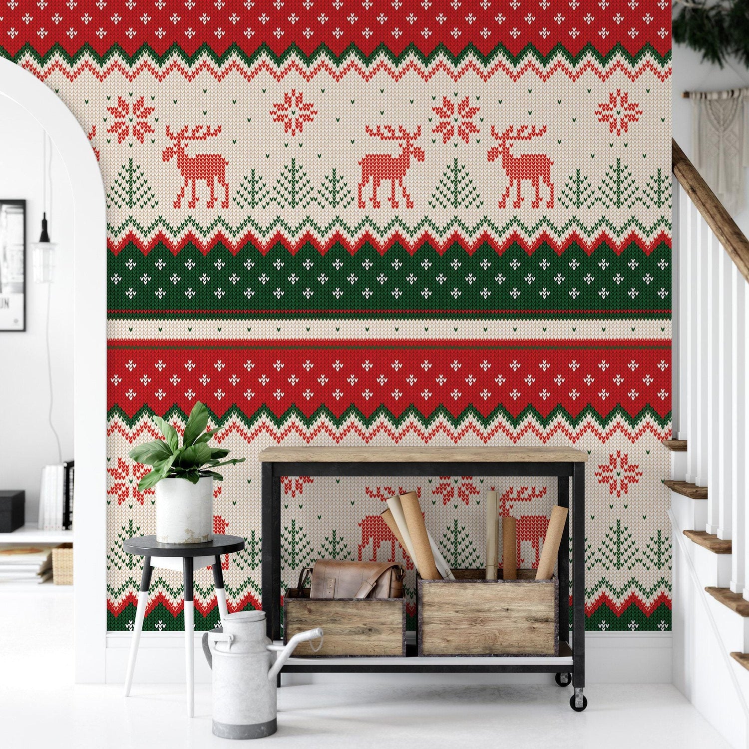PEEL AND STICK WALLPAPER Removable Wallpaper, Traditional Wallpaper, Wall Art, Wall Decor, Holiday Decor, Holiday Art, Christmas
