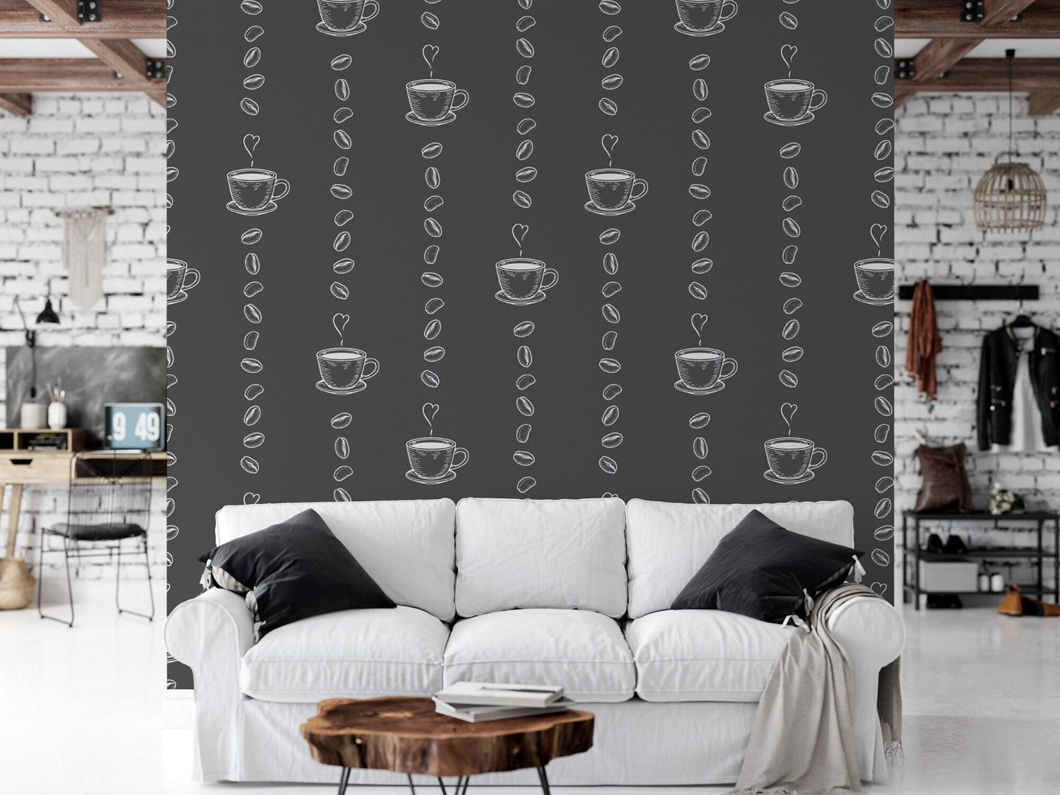 Coffee Love Coffee Shop - Peel and Stick Wallpaper, Removable Wallpaper, Traditional Wallpaper - Wall Art, Coffee Decor, Coffee Art