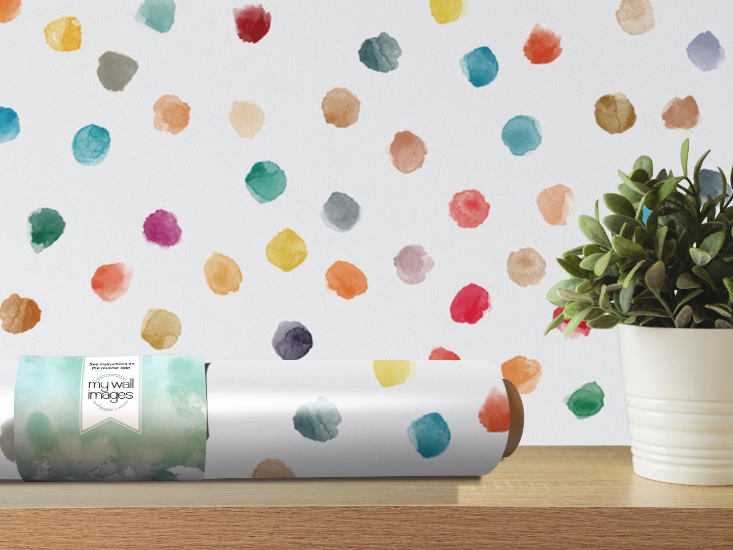 Colorful Watercolor Spots Removable Wallpaper, Wall Art, Peel and Stick Wallpaper, Room Decor, Nursery Wallpaper, Accent Wall
