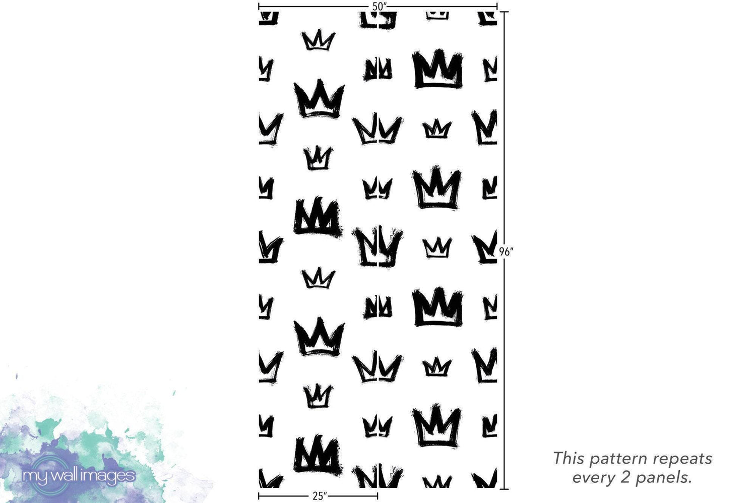 Crown Removable Wallpaper, Skater, Pop Art, Black White Wall Art, Peel and Stick Wallpaper, Mural, Nursery Wallpaper, Accent Wall