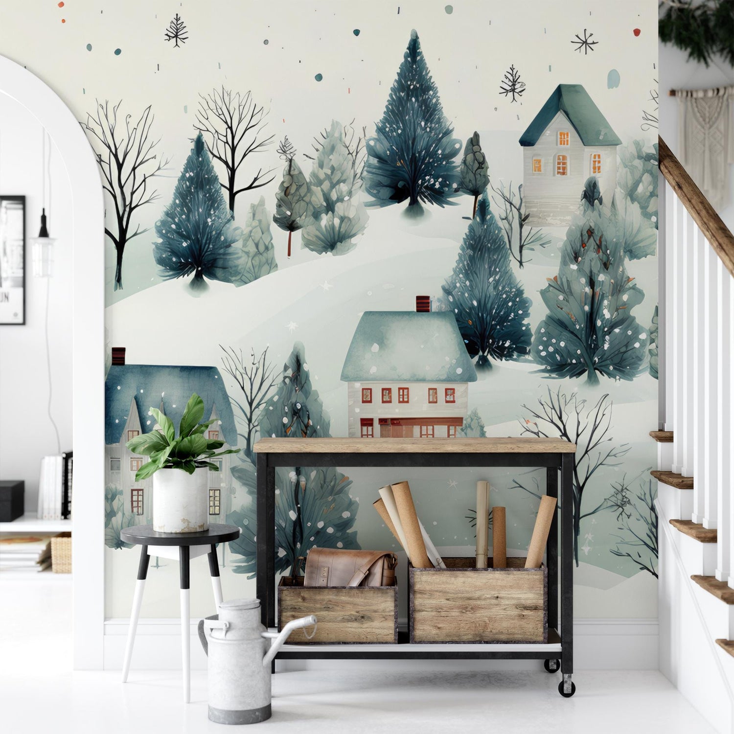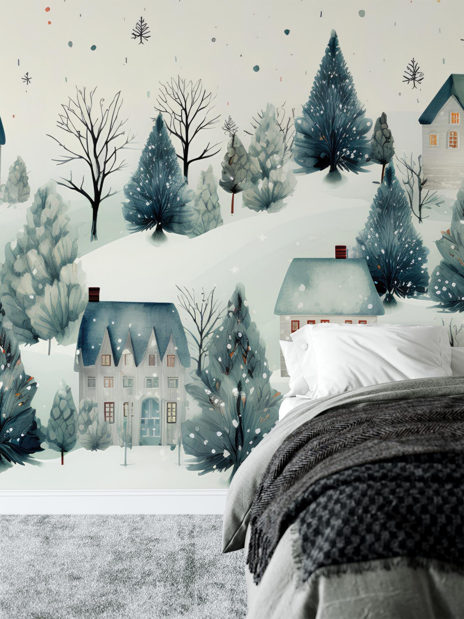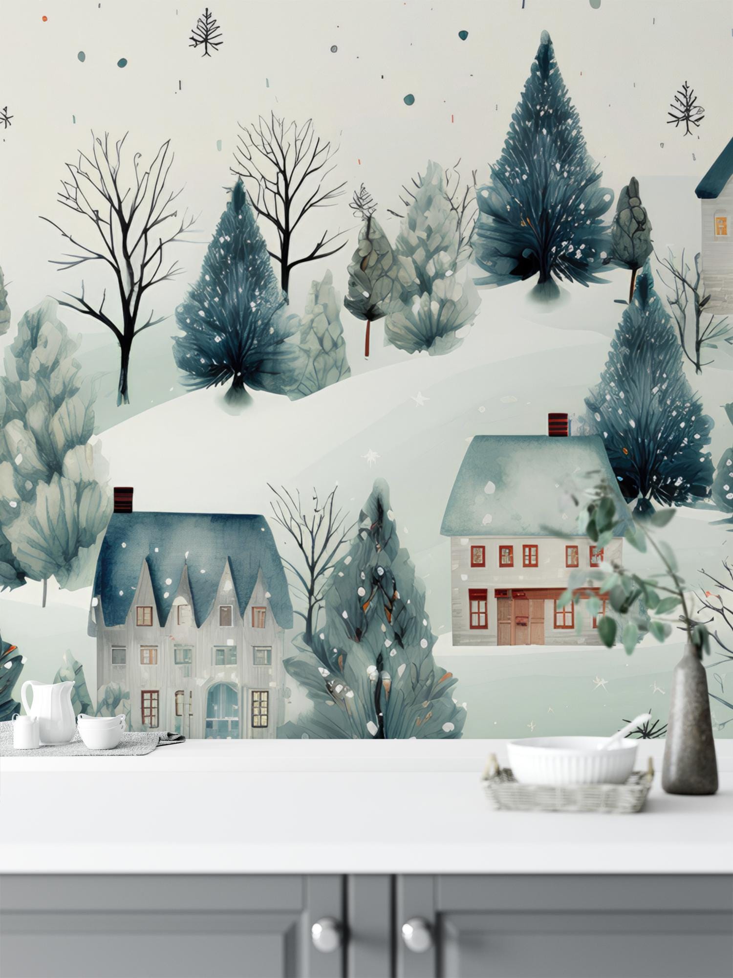 CUSTOM - Winter Village Removable Wallpaper, Wall Art, Peel and Stick Wallpaper, Wall Mural, Accent Wall Holiday Wallpaper, MW1941