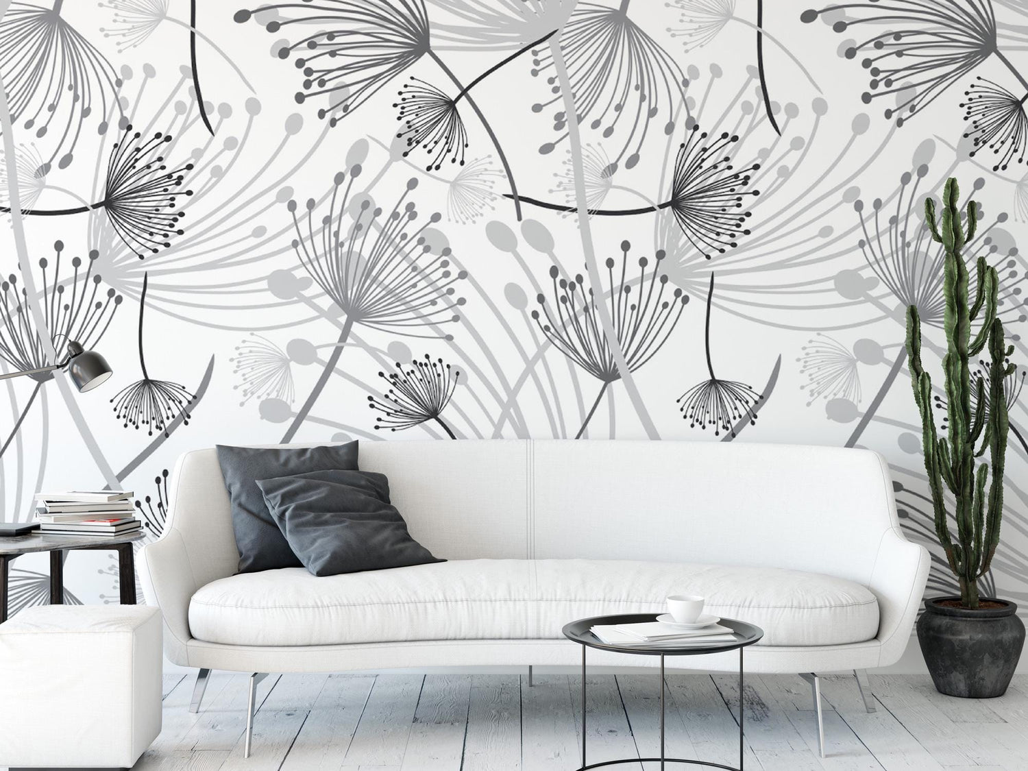 Dandelion Fluff Black and White Peel and Stick Wallpaper - Wall Decor - Dandelion Wallpaper - Wall Art - Modern Peel Stick Wallpaper, MW1690