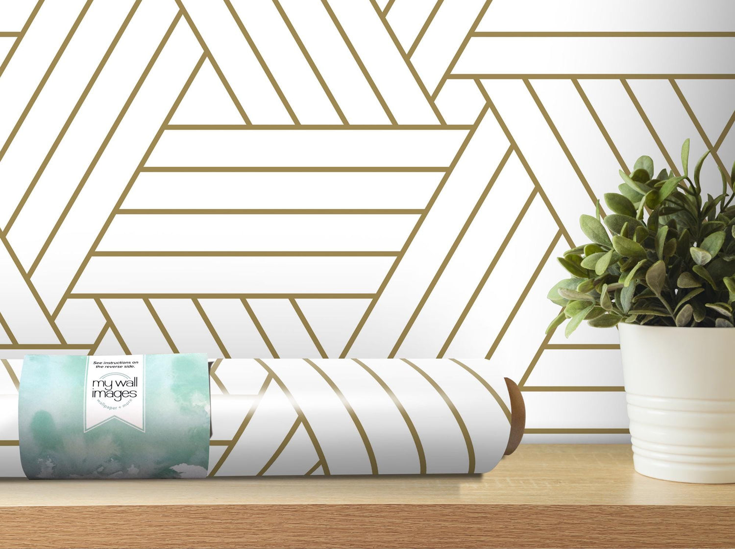 Delicate Gold Lines on White Removable Wallpaper, Wall Art, Peel and Stick Wallpaper, Room Decor, Accent Wall, Geometric Wallpaper