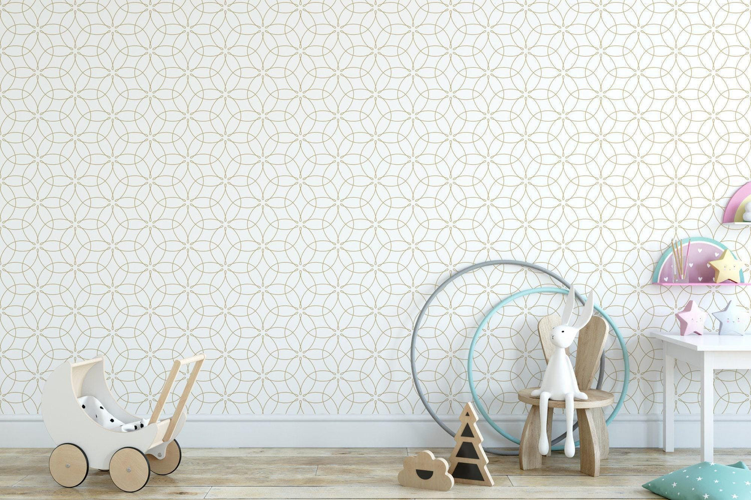 Delicate Gold Lines on White Removable Wallpaper, Wall Art, Peel and Stick Wallpaper, Room Decor, Accent Wall, Geometric Wallpaper