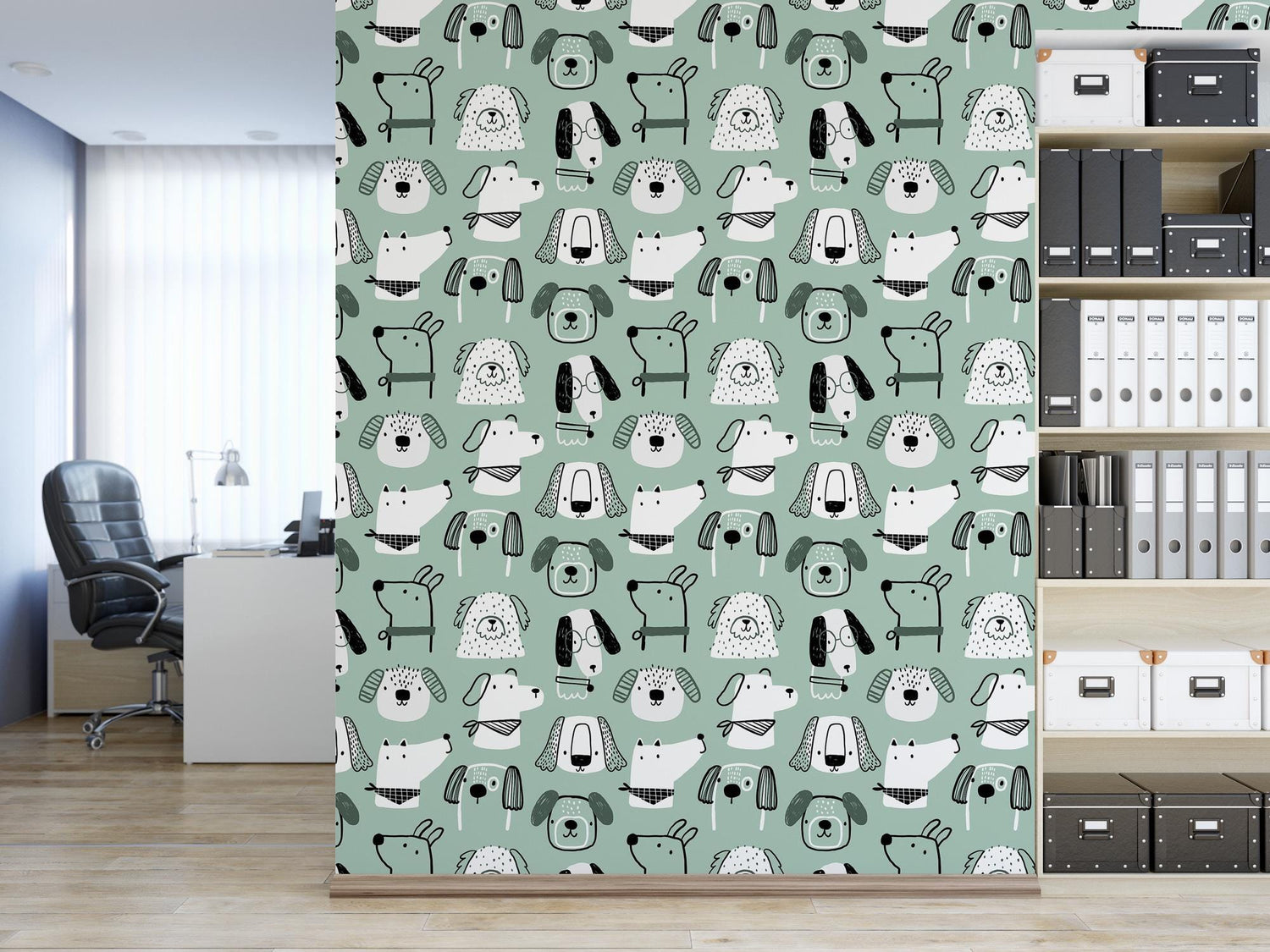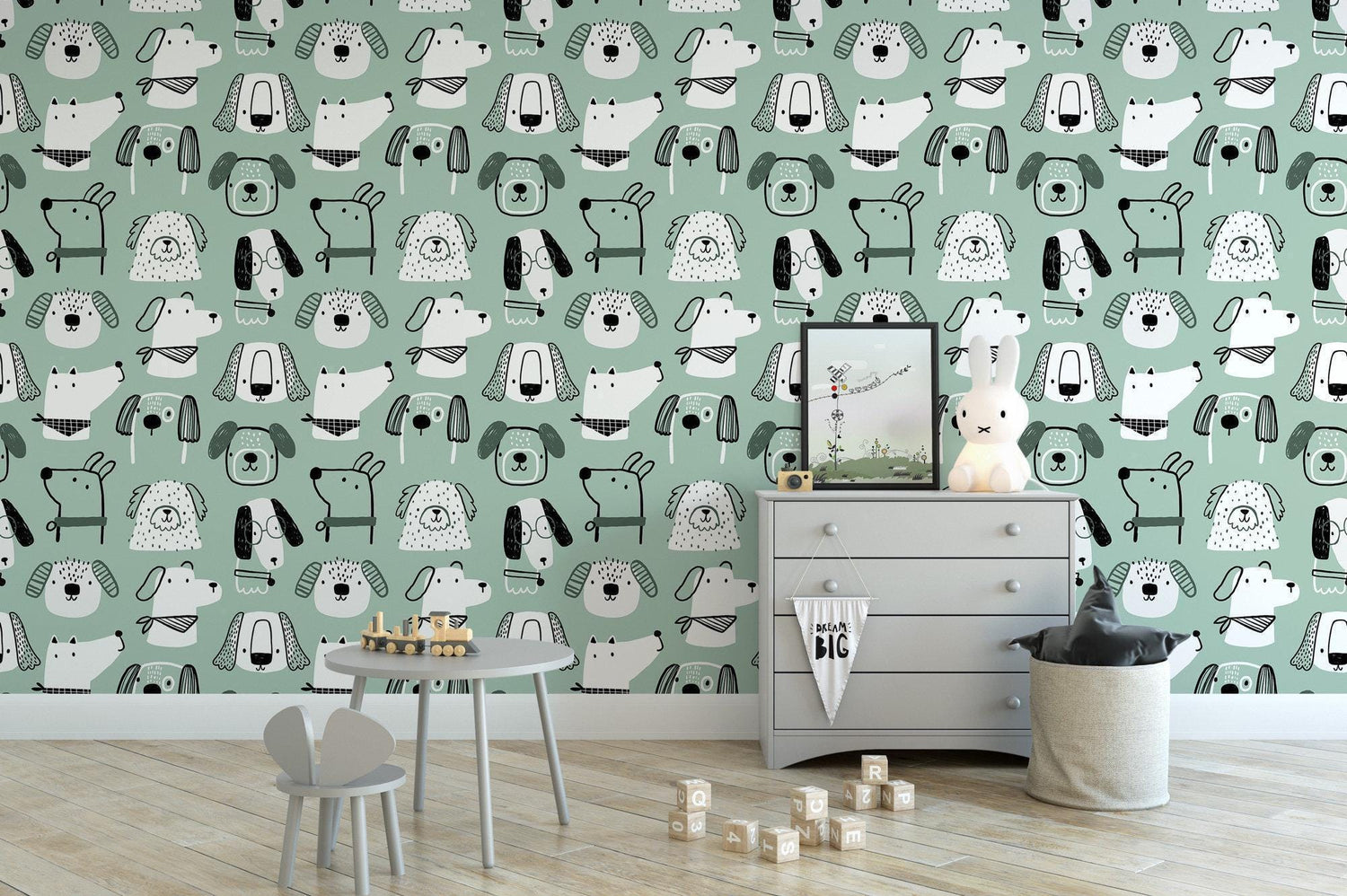 Dogs Puppies Nursery Removable Wallpaper, Wall Art, Peel and Stick Wallpaper, Accent Wall, Kids Room, Animal Wallpaper