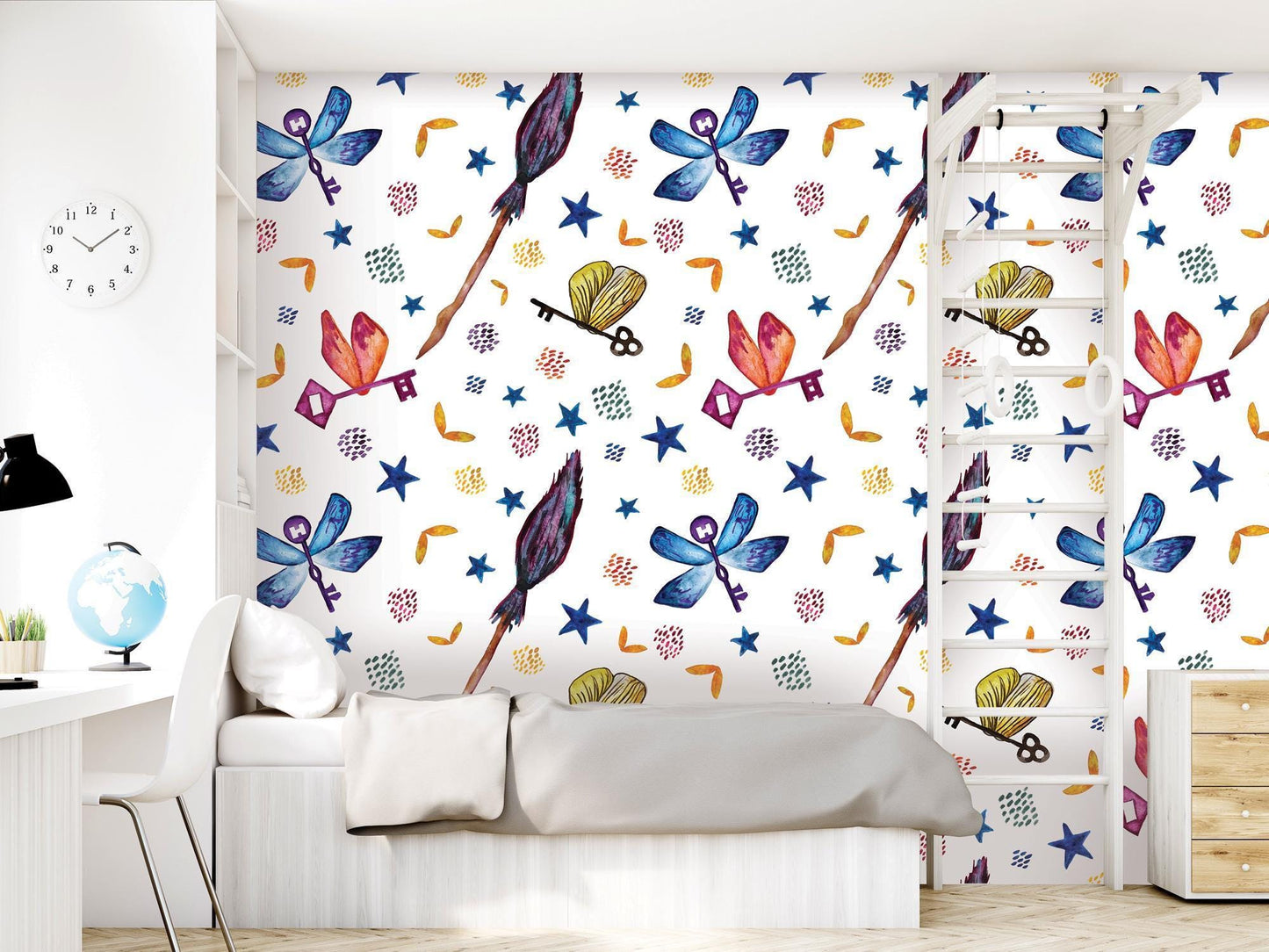 Enchanted Potter Flying Keys Removable Wallpaper, Wall Art, Peel and Stick Wallpaper, Wall Decor, Harry Pottery, Kids Room, Nursery, MW2041