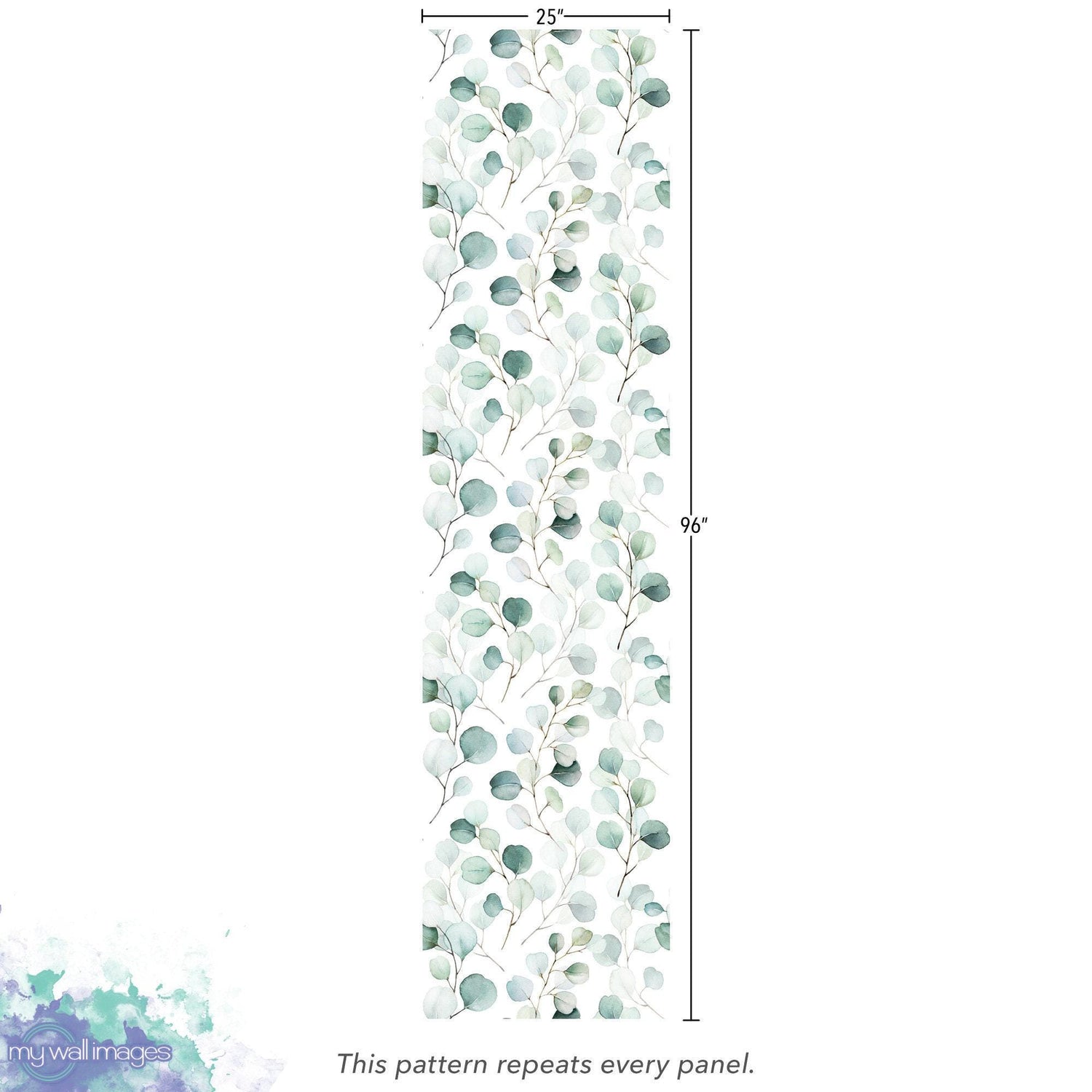 Eucalyptus Watercolor Leaves, Soft Green Removable Wallpaper, Wall Art, Peel and Stick Wallpaper, Bedroom, Room Decor, Accent Wall
