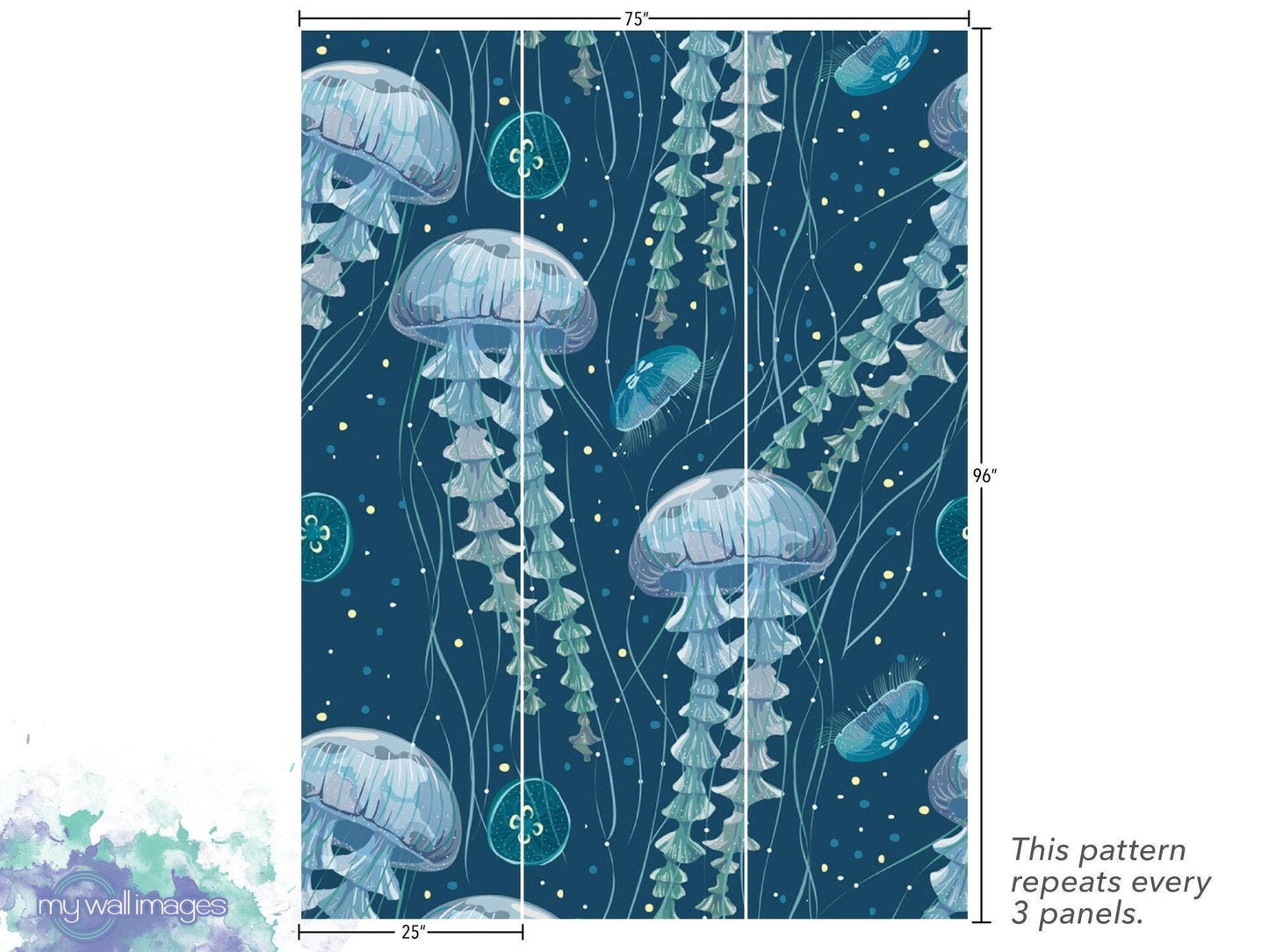 Giant Jellyfish Blues Removable Wallpaper, Art, Peel and Stick Wallpaper, Mural, Room Decor, Accent Wall, Ocean Wallpaper, Sea Decor