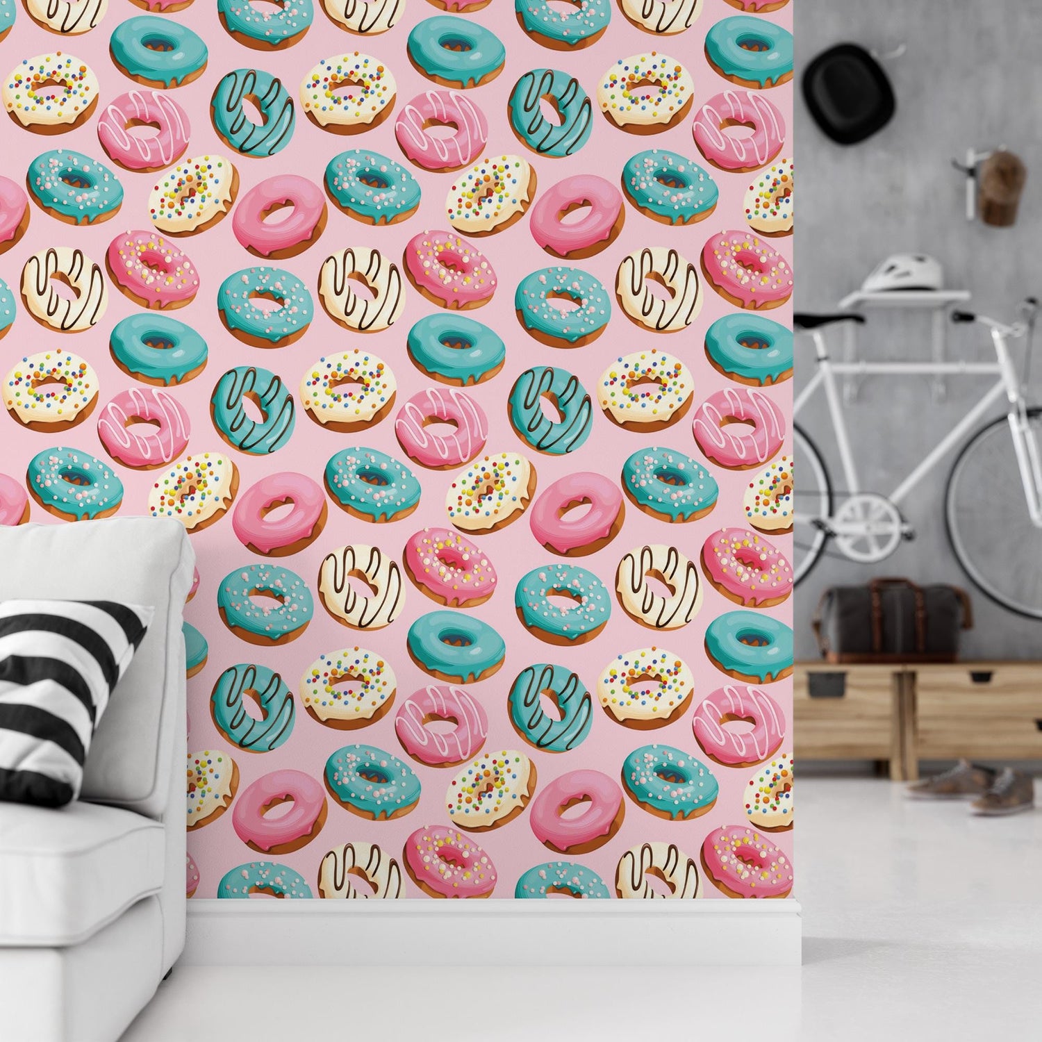 Glazed Donuts, Food Removable Wallpaper, Wall Art, Peel and Stick Wallpaper, Mural, Accent Wall, Donut Decor, Donut Art