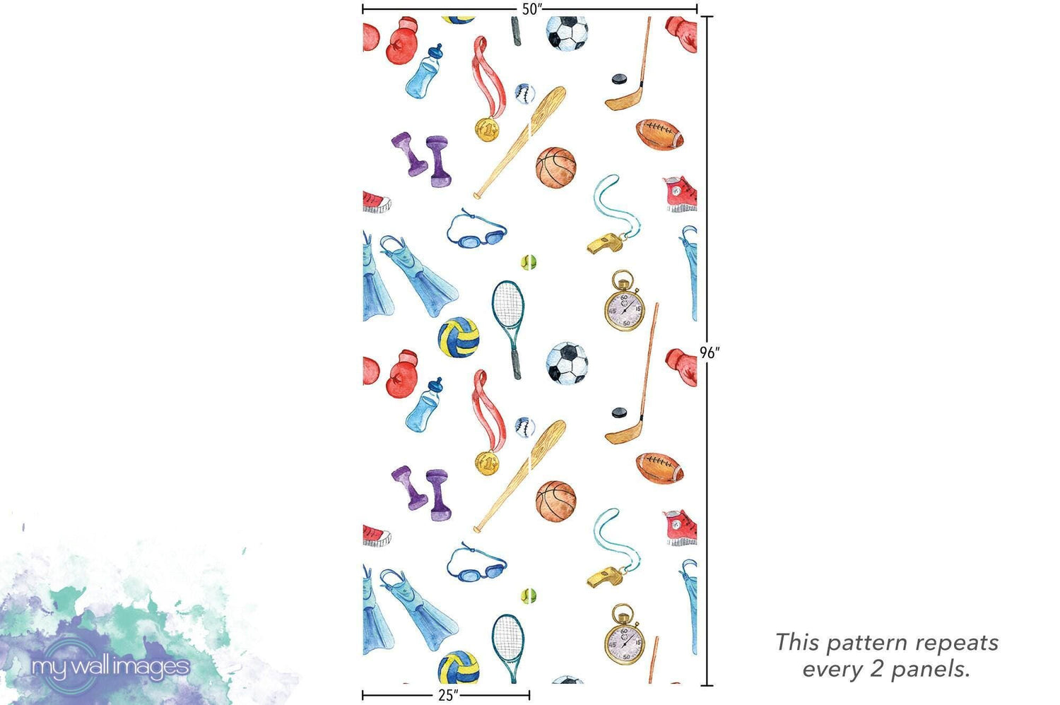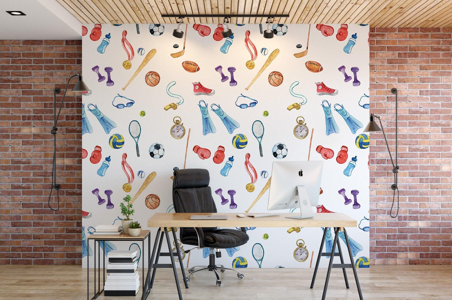 Go Sports, Swim Tennis, Boxing, Gym Removable Wallpaper, Wall Art, Peel and Stick Wallpaper, Mural, Accent Wall, Sports Wallpaper