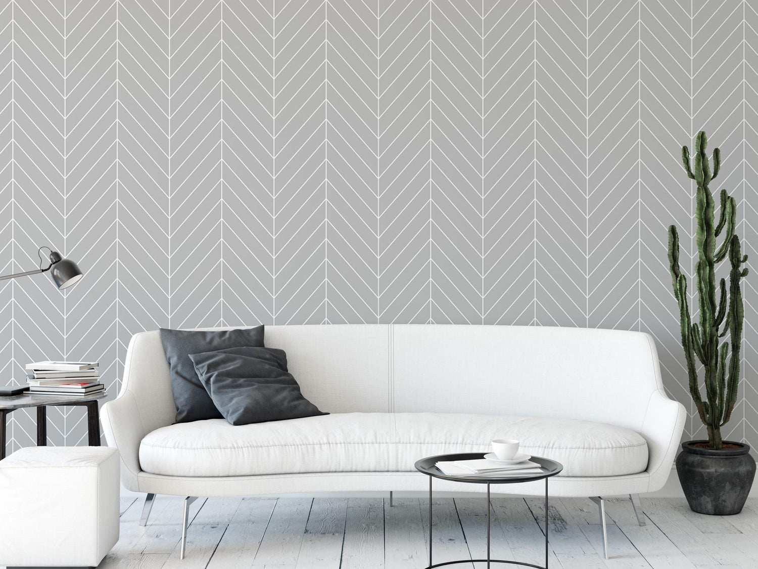 Gray and White Herringbone, Modern, Removable Wallpaper, Peel and Stick Wallpaper, Mural, Living Room, Bedroom, Decor, Accent Wall
