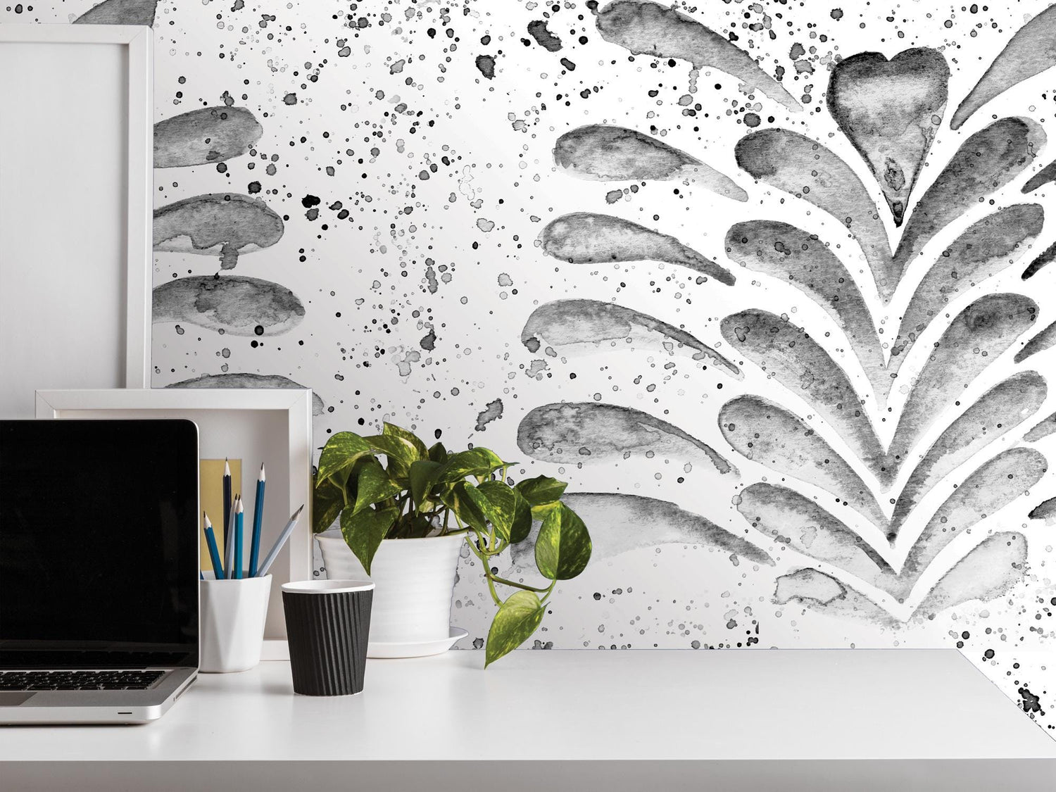 Gray Splashing Watercolor Fleur Removable Wallpaper, Peel and Stick Wallpaper, Wall Art, Wall Decor