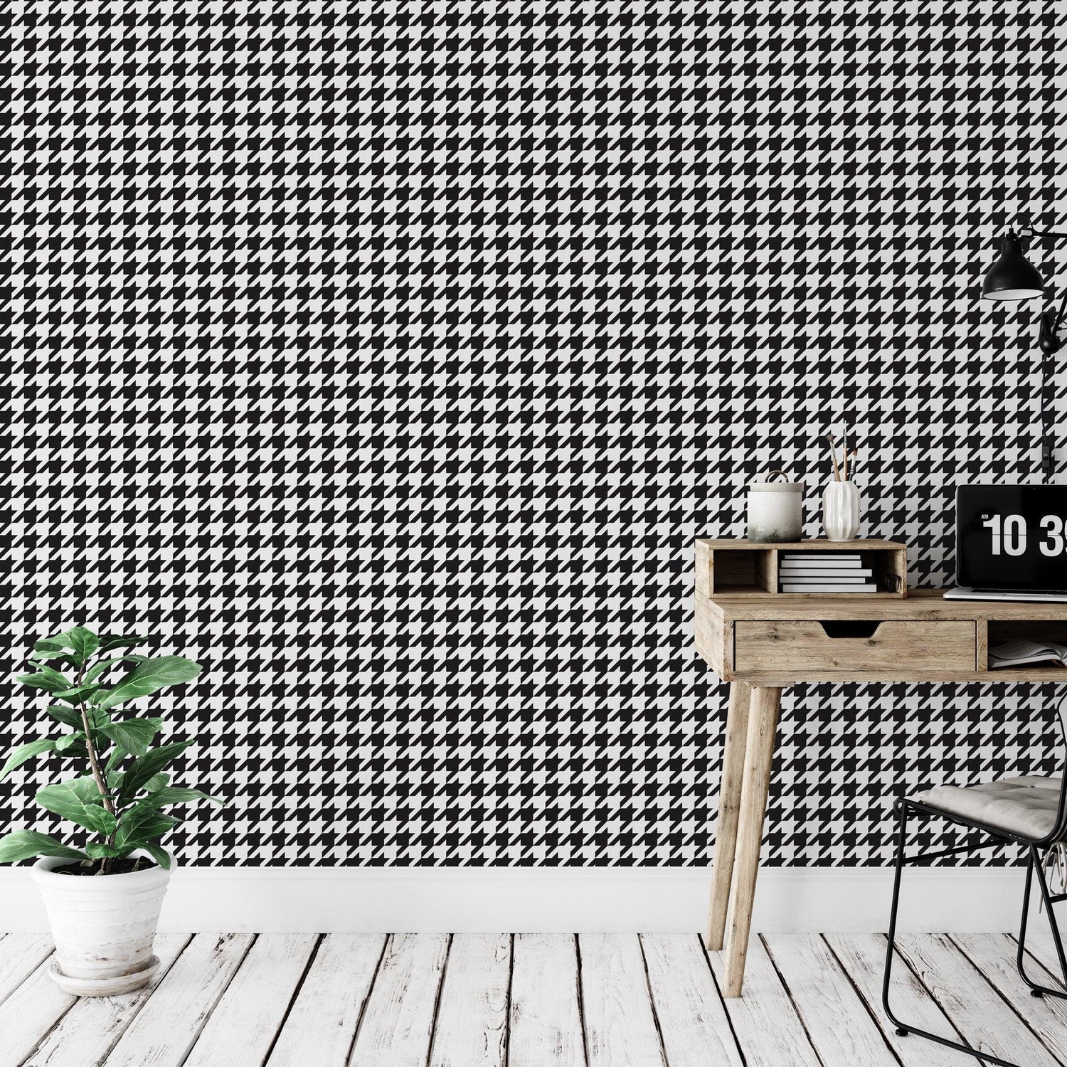 Houndstooth Pattern Black and White Removable Wallpaper, Wall Art, Peel and Stick Wallpaper, Room Decor, Accent Wall, Modern