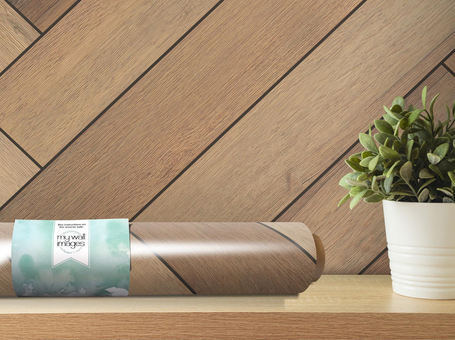 Large Wide Faux Wood Herringbone Wallpaper MW1683lg