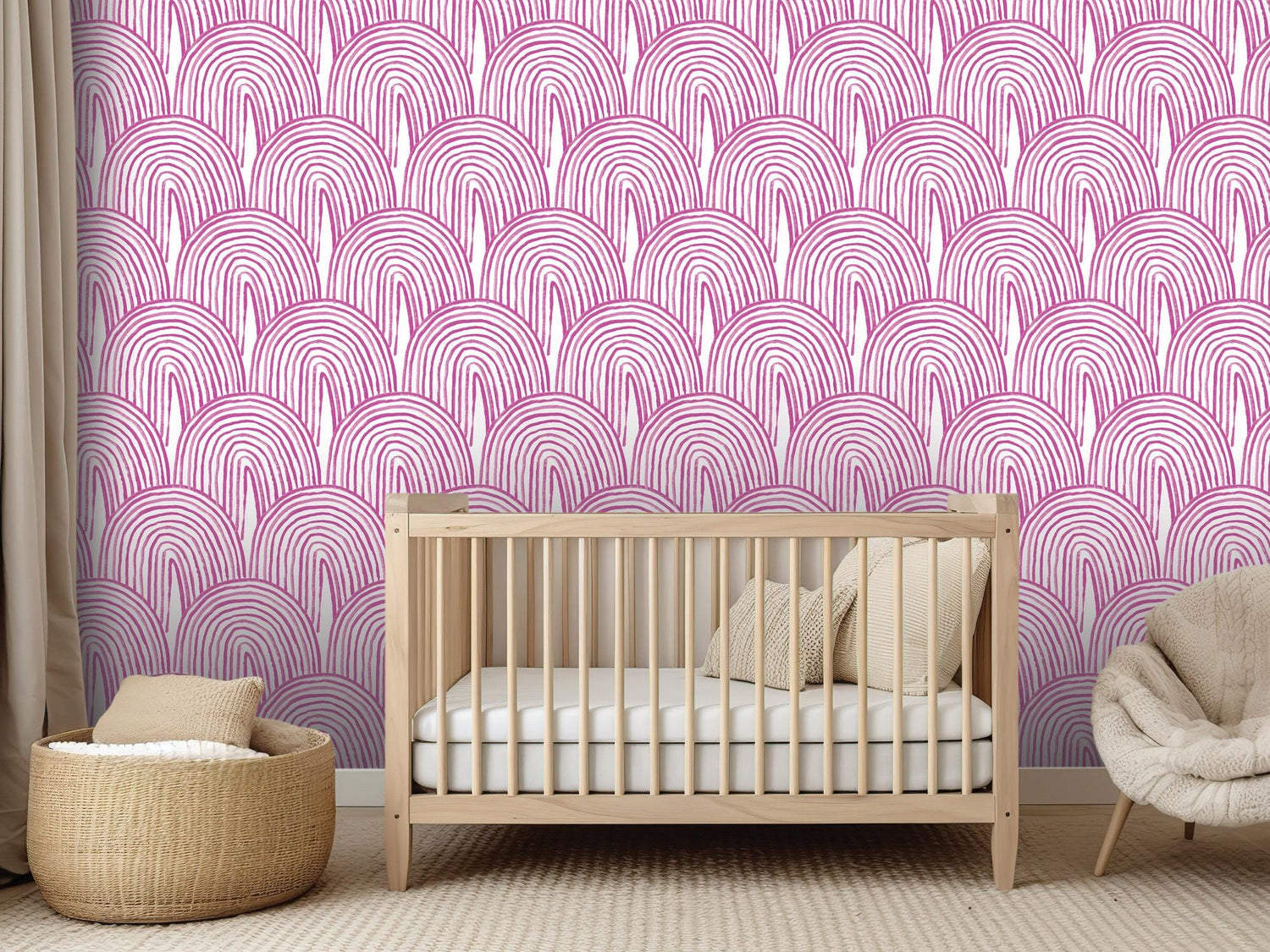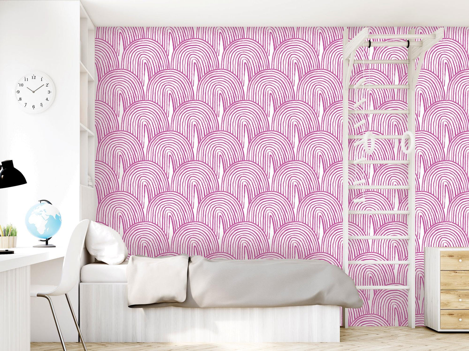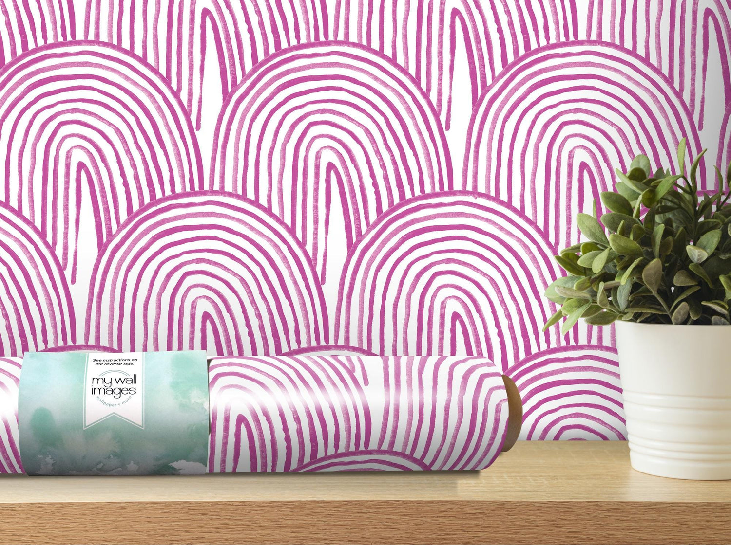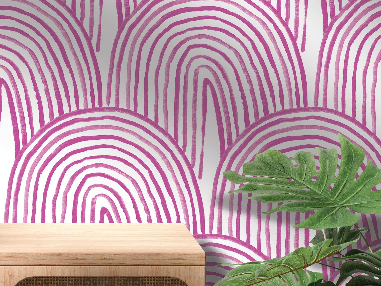 Magenta Boho Watercolor Rainbow Removable Wallpaper, Peel and Stick Wallpaper, Wall Art, Wall Decor