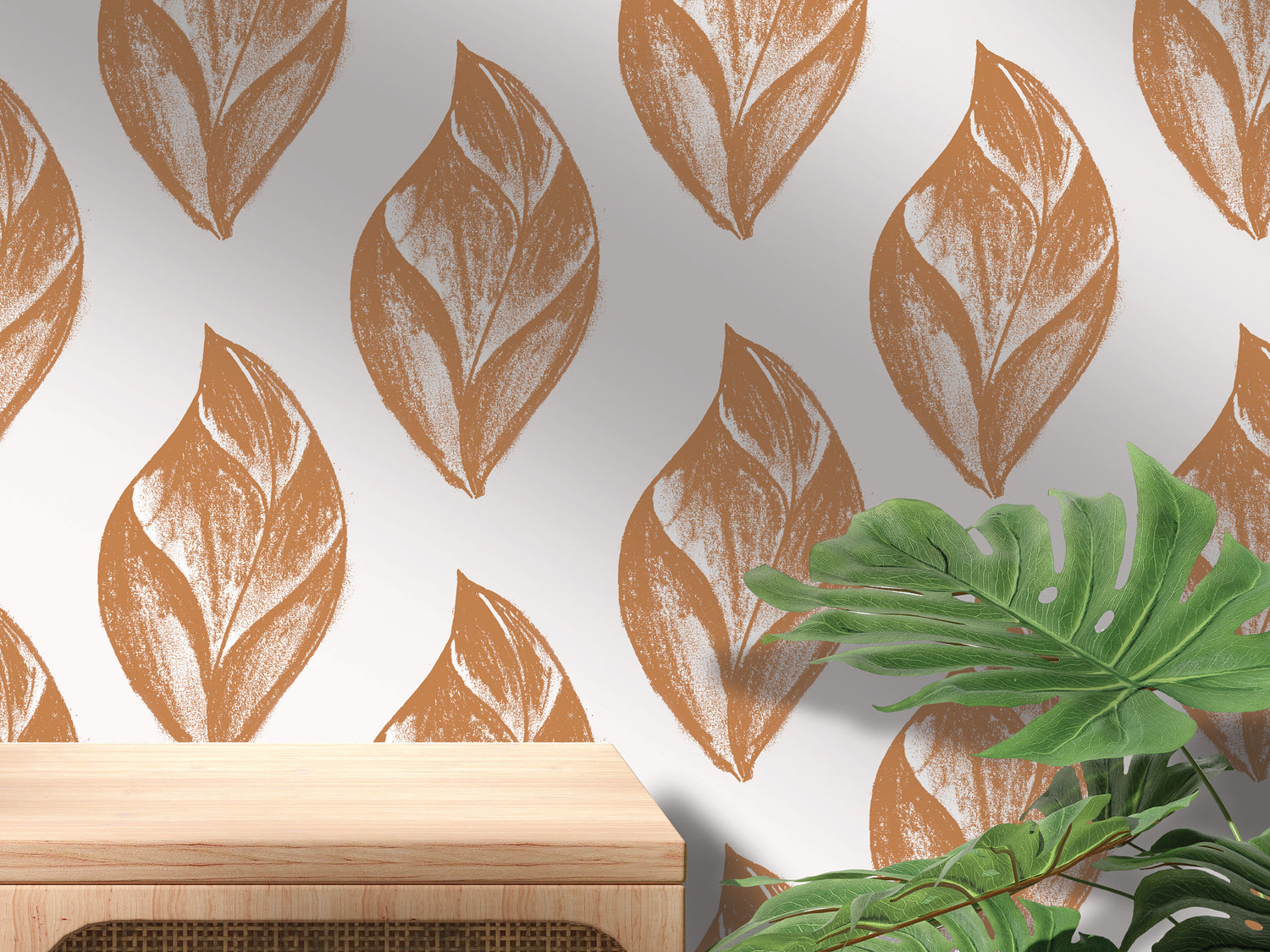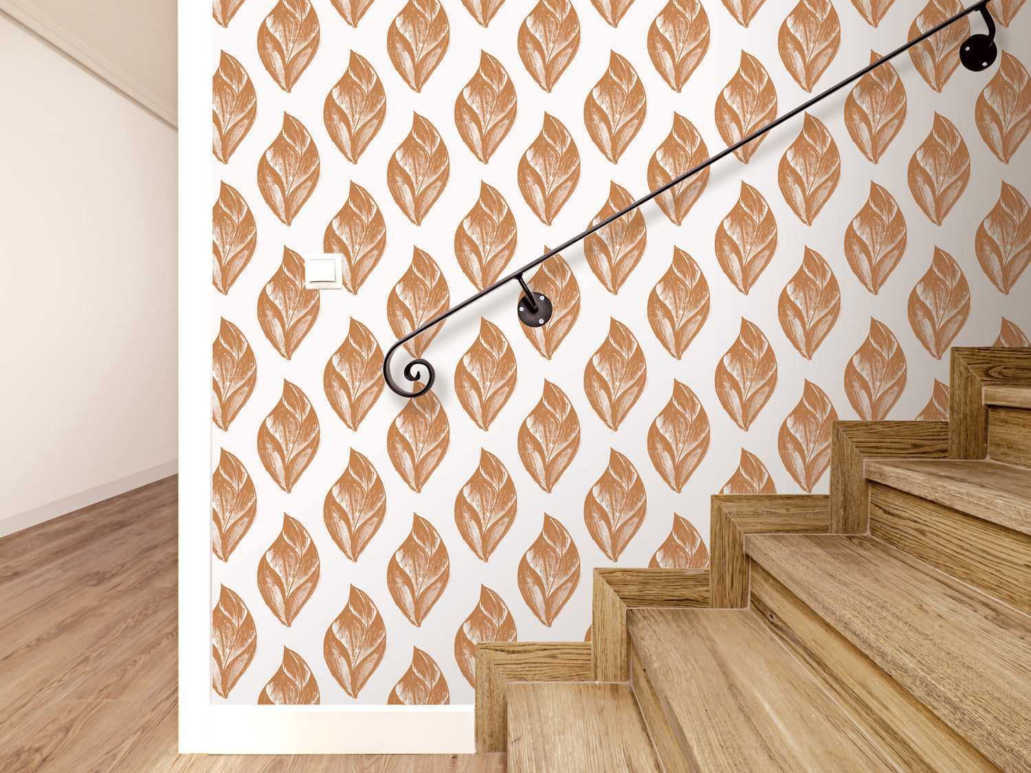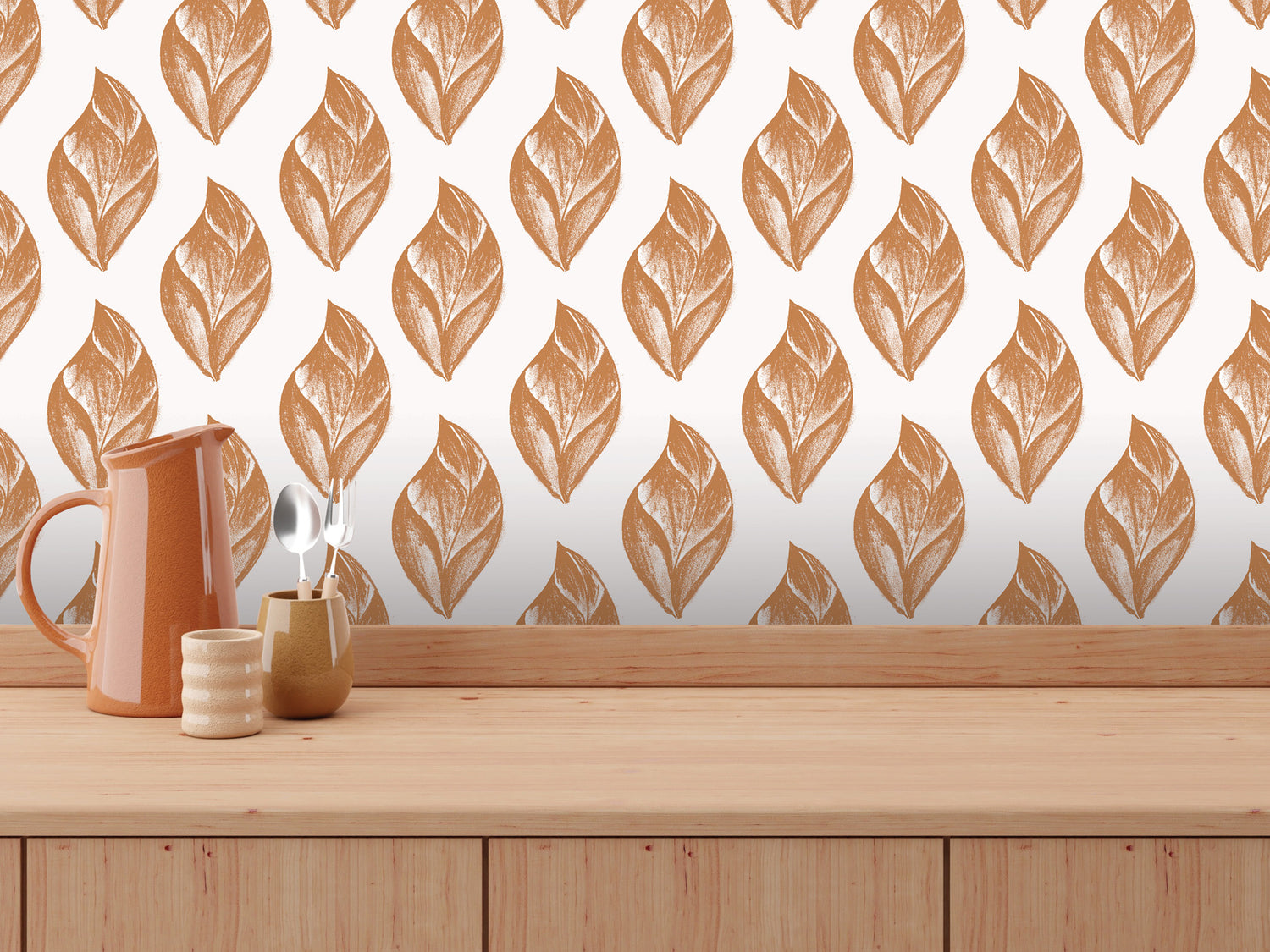 Orange Leaves Peel and Stick Wallpaper | Orange Artsy Charcoal (MW2083)