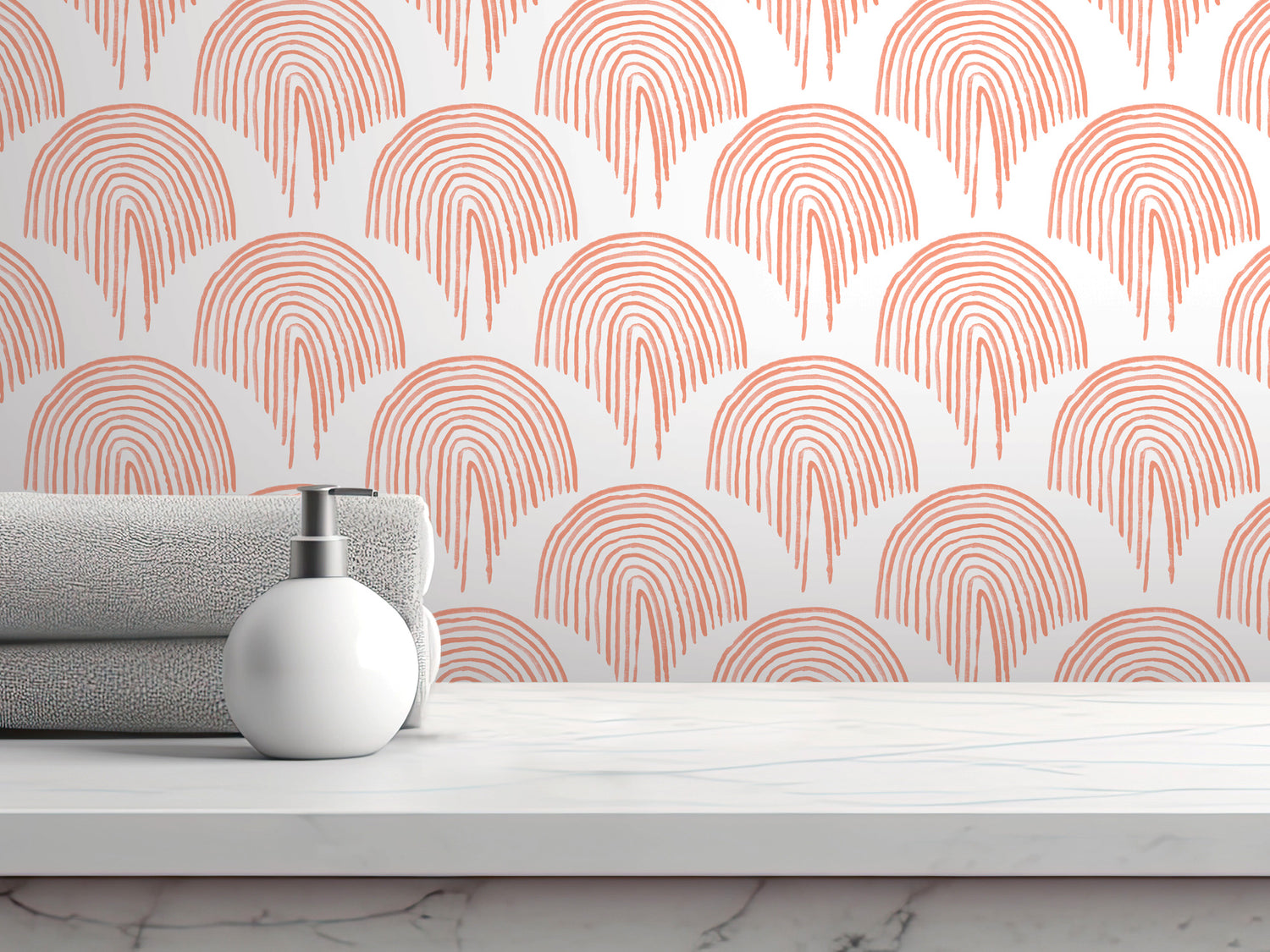 Orange Boho Floating Rainbow Wallpaper | Peel and Stick Mural (MW2110)