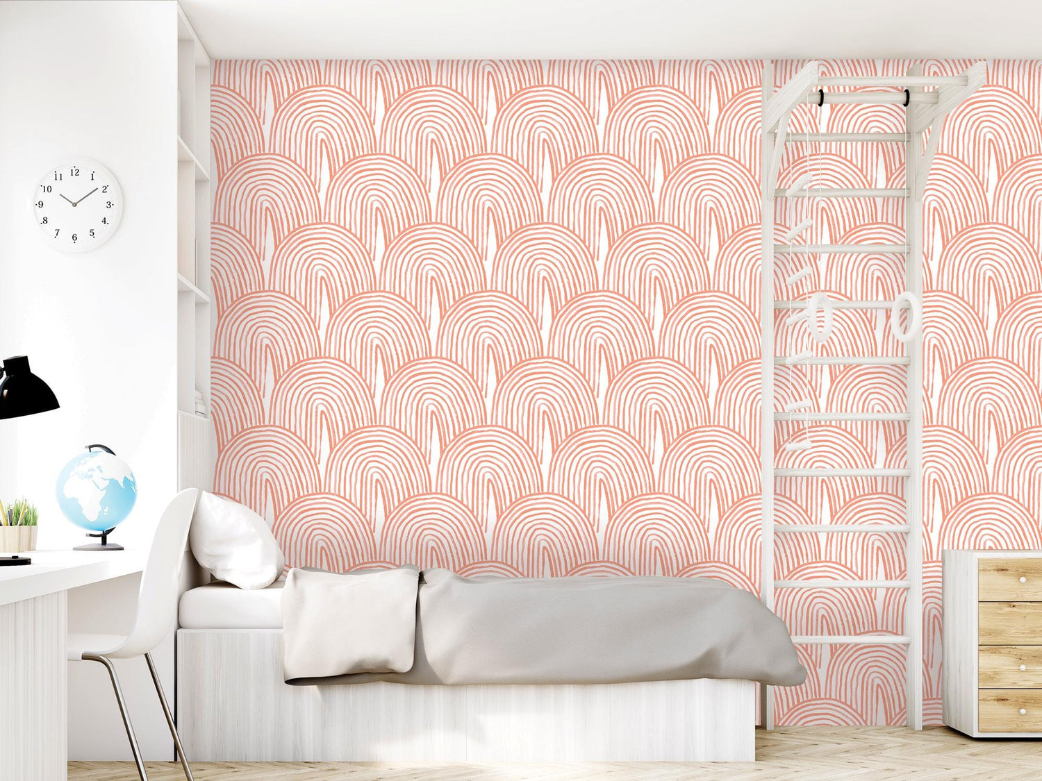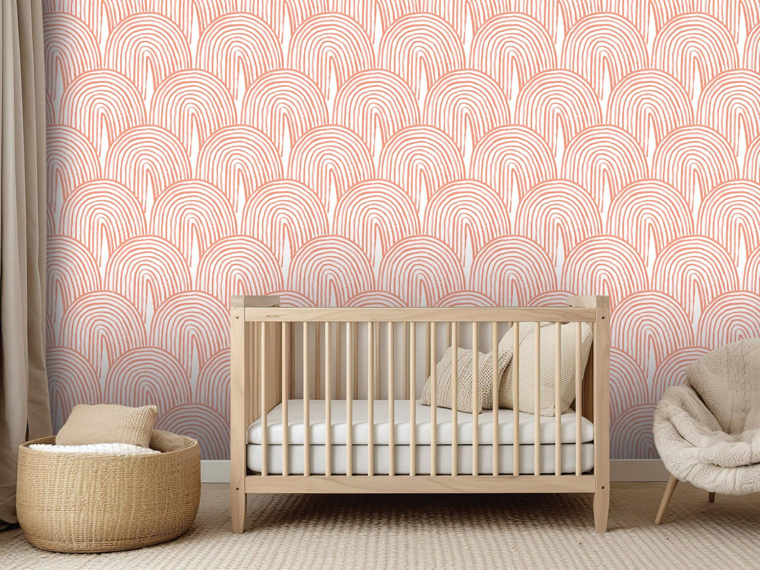 Orange Boho Watercolor Rainbow Removable Wallpaper, Wall Art, Peel and Stick Wallpaper, Wall Decor, Nursery, Kids Room, Kitchen, MW2121