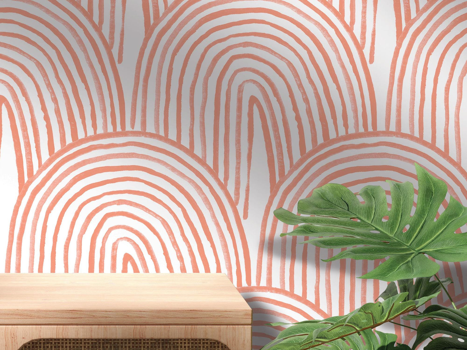 Orange Boho Watercolor Rainbow Removable Wallpaper, Peel and Stick Wallpaper, Wall Art, Wall Decor