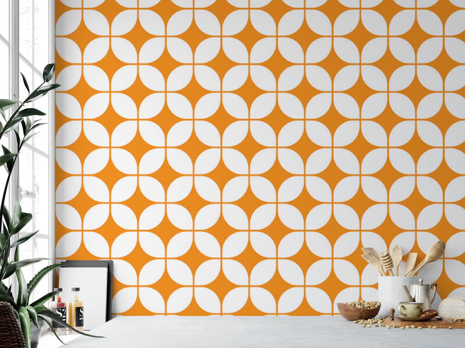 Orange & White 60's Geometric, Removable Wallpaper, Wall Art, Peel and Stick Wallpaper, Orange Wallpaper, Kitchen Tile, Folk Art