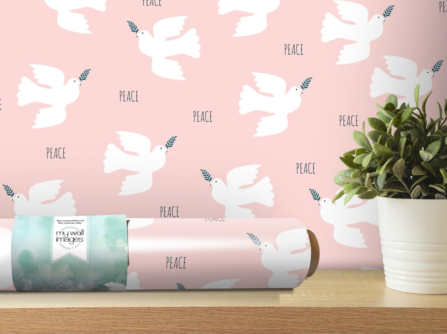 Peace, Dove, Olive Branch Removable Wallpaper, Wall Art, Peel and Stick Wallpaper, Hanukkah Mural, Accent Wall Holiday Wallpaper