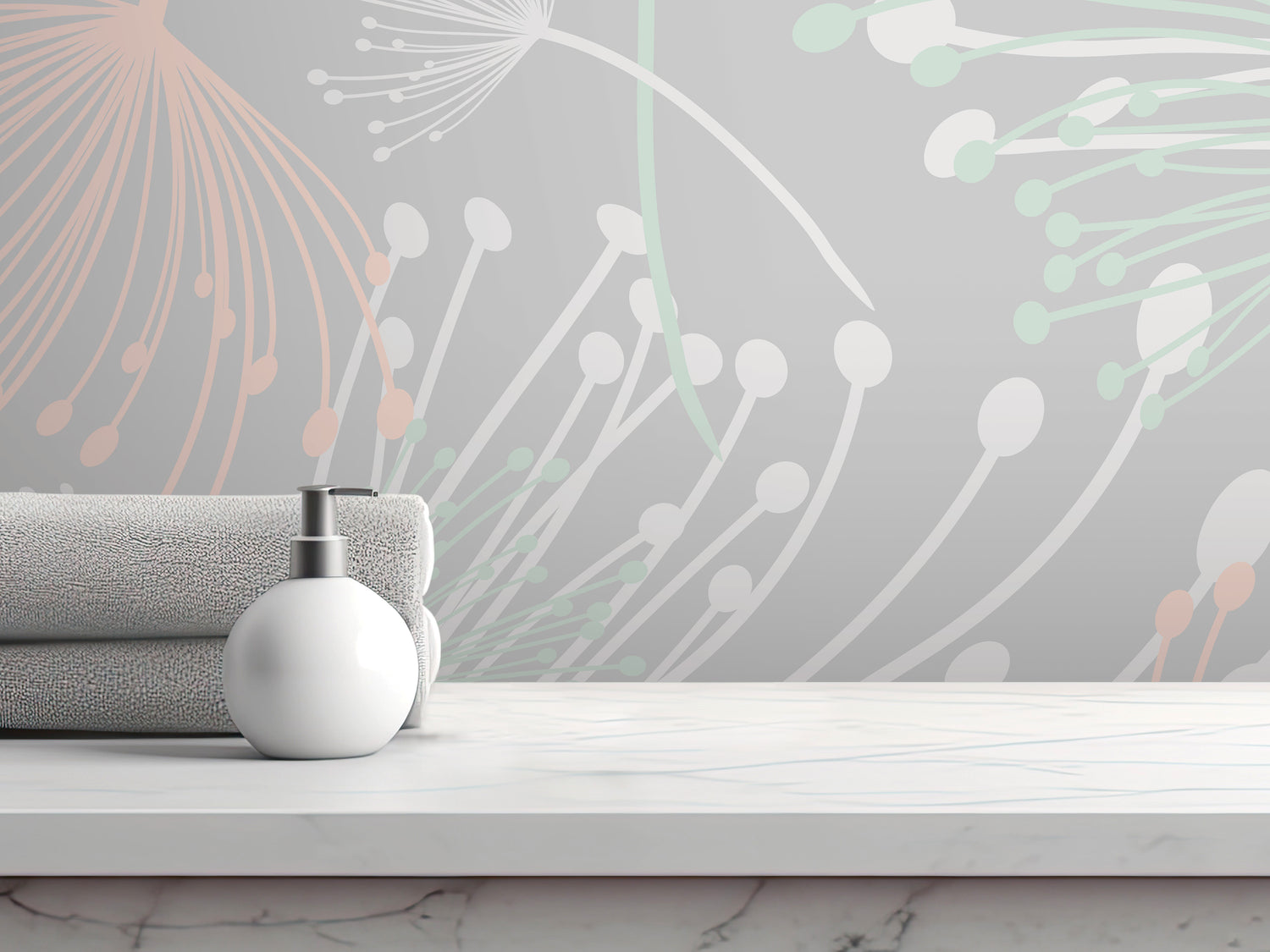 Peach Mint Dandelion Fluff | Peel and Stick Wallpaper | Eco Friendly Floral Decor (MW2270)