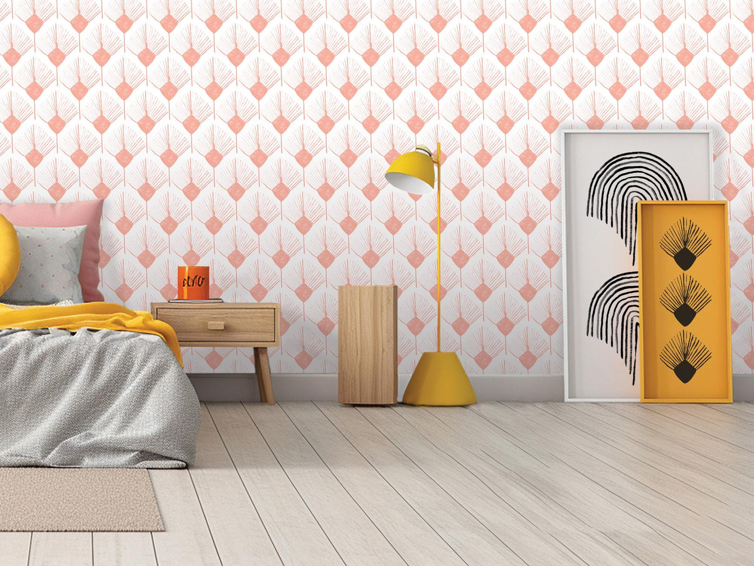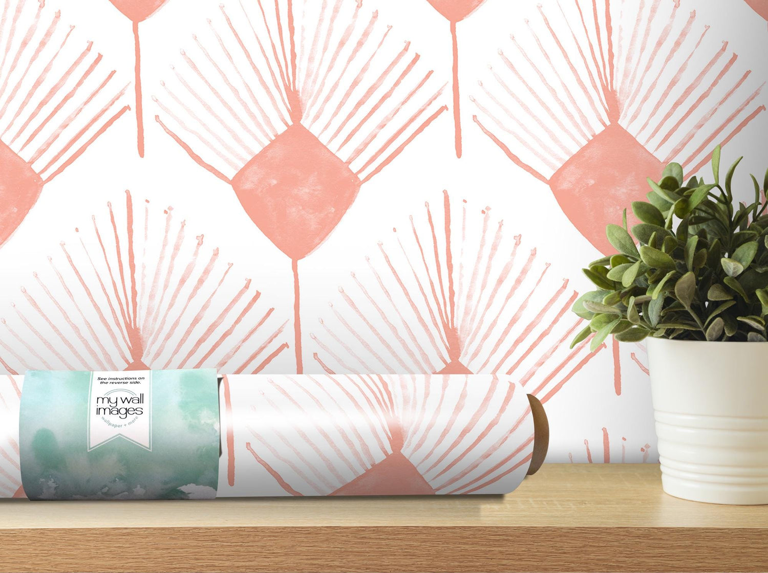 Peachy Pink Diamond Boho Spray Removable Wallpaper, Peel and Stick Wallpaper, Wall Art, Wall Decor