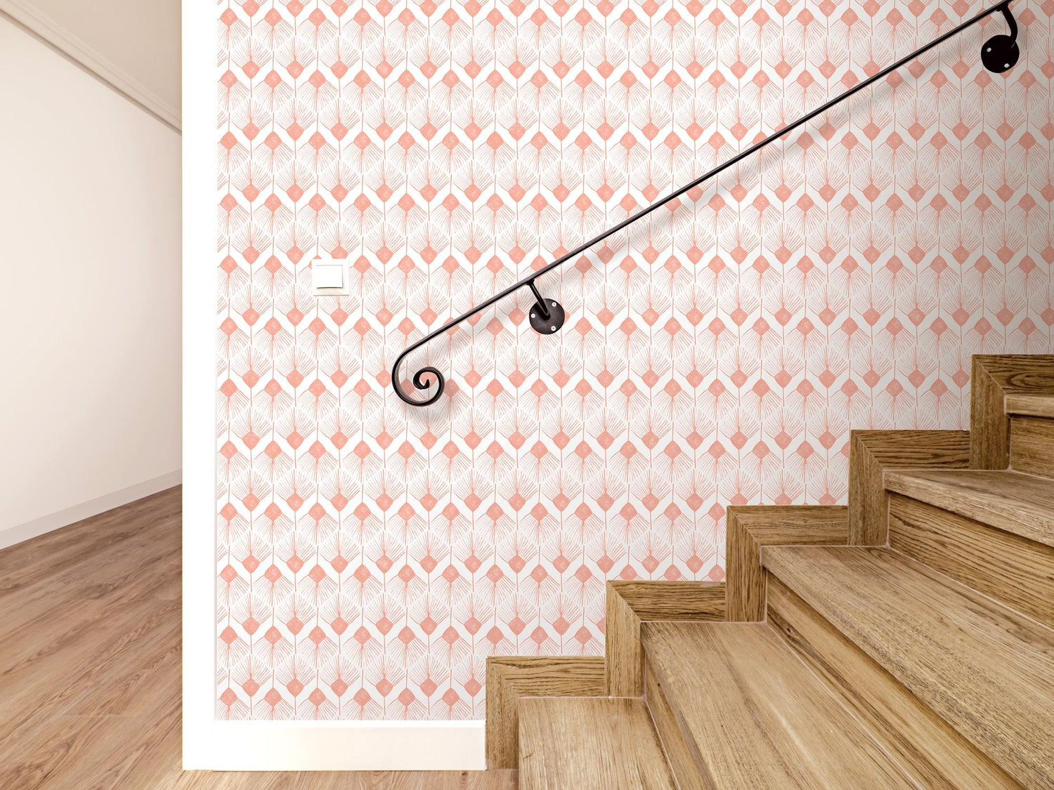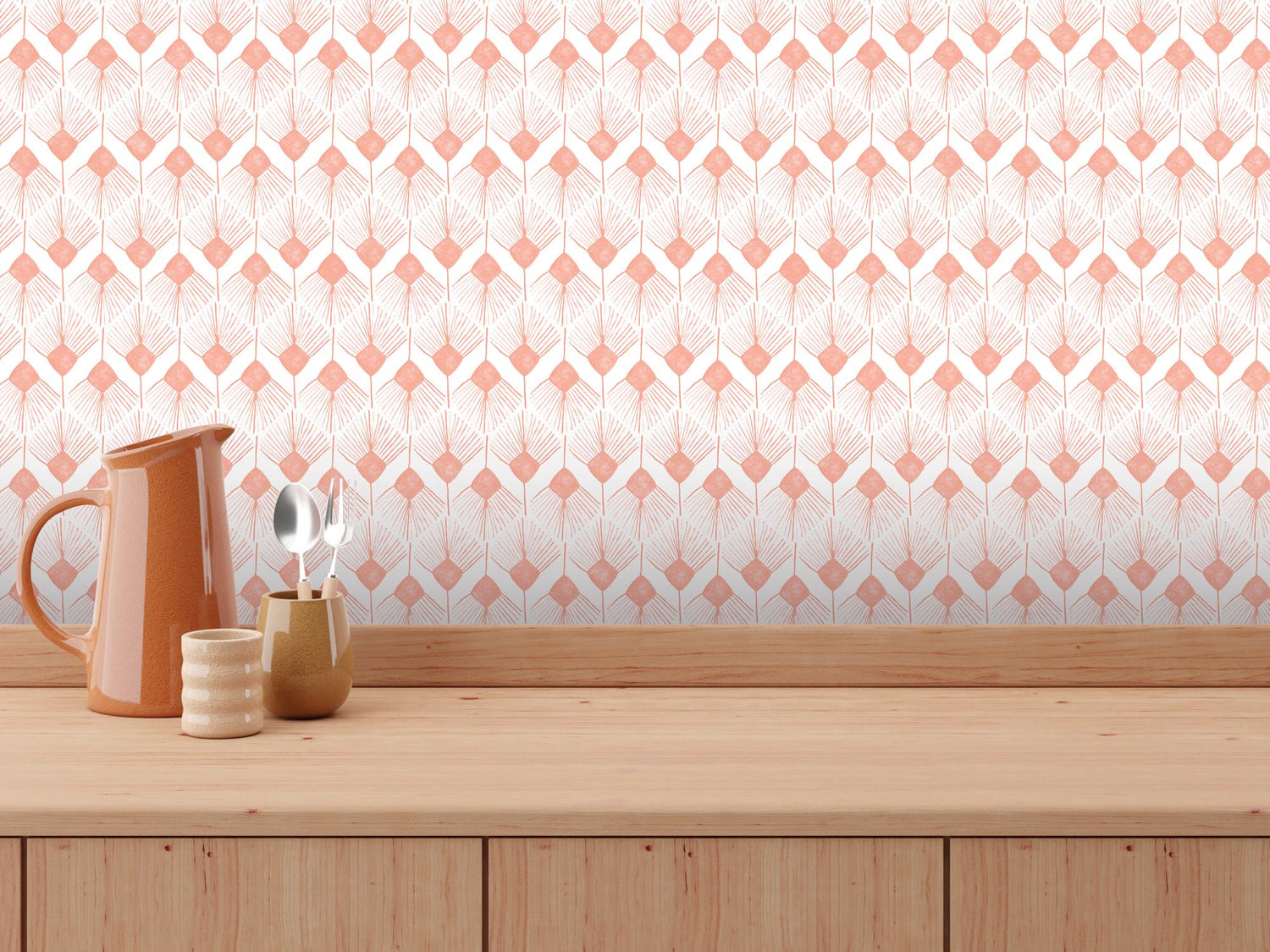 Peachy Pink Zig Zag Diamond Boho Spray Removable Wallpaper, Peel and Stick Wallpaper, Wall Art, Wall Decor