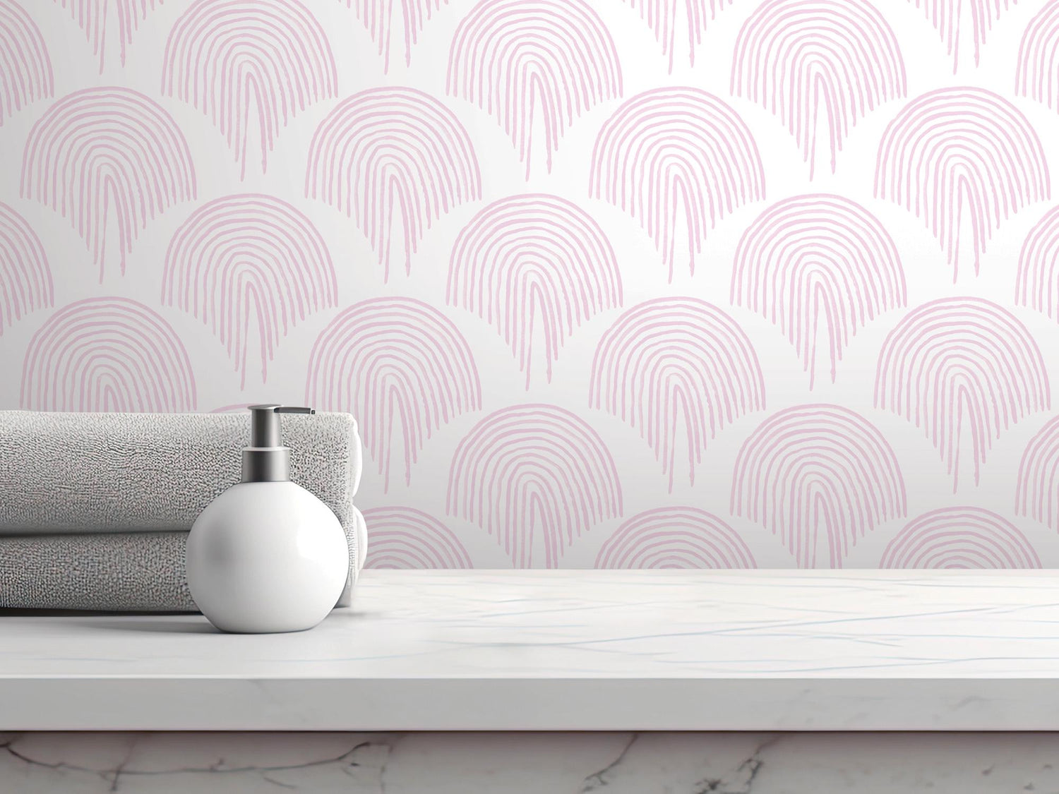 Pink Boho Floating Rainbow Removable Wallpaper, Wall Art, Peel and Stick Wallpaper, Wall Decor, Girls Room, Nursery Decor, Bathroom, MW2109