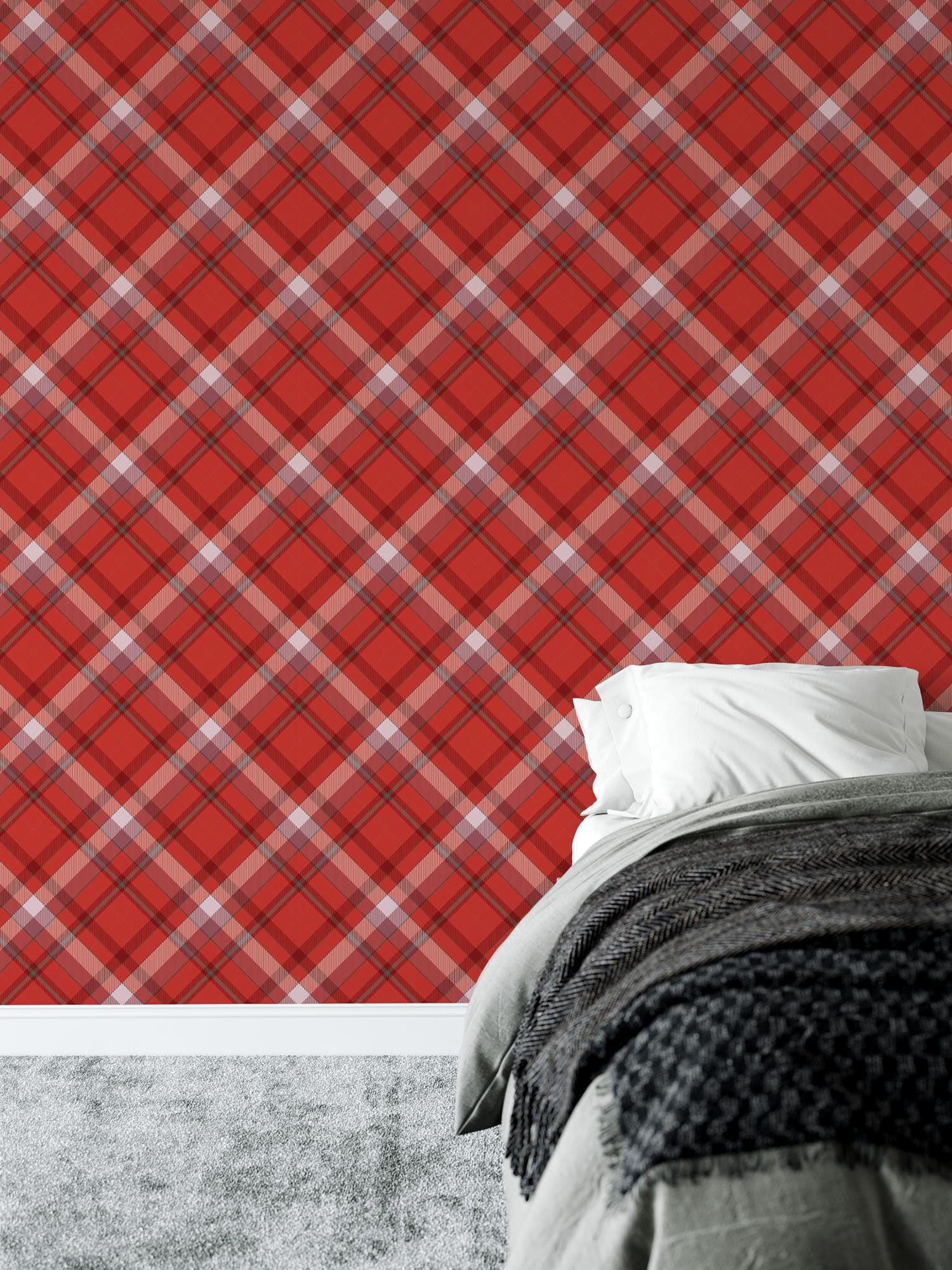 Plaid Christmas Red Plaid Removable Wallpaper, Wall Art, Peel and Stick Wallpaper, Wall Mural, Nursery, Room Decor, Accent, MW1643